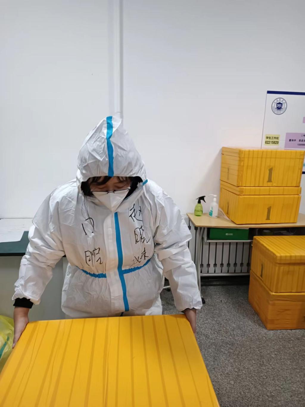 “六楼下来取餐啦……”,口腔医学院学生科长赵晓姝除担任二号楼单元长、楼层长外,还承担着三百余名学生每日三餐的征订、错峰取配工作。她根据疫情防控的要求制定取餐方案,按照“分时段、分楼层、控人数”的原则,由楼层长带领志愿者在指定时间分楼层取餐、分餐,顺利完成每日每餐的取配工作,确保每位同学第一时间吃上热乎饭。