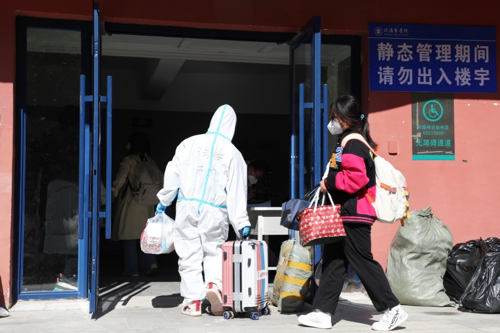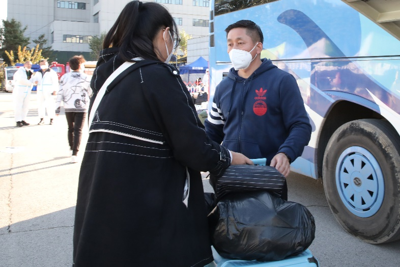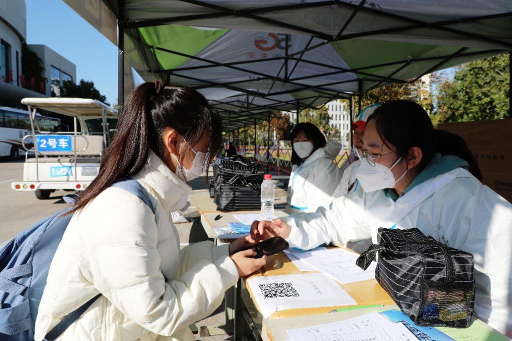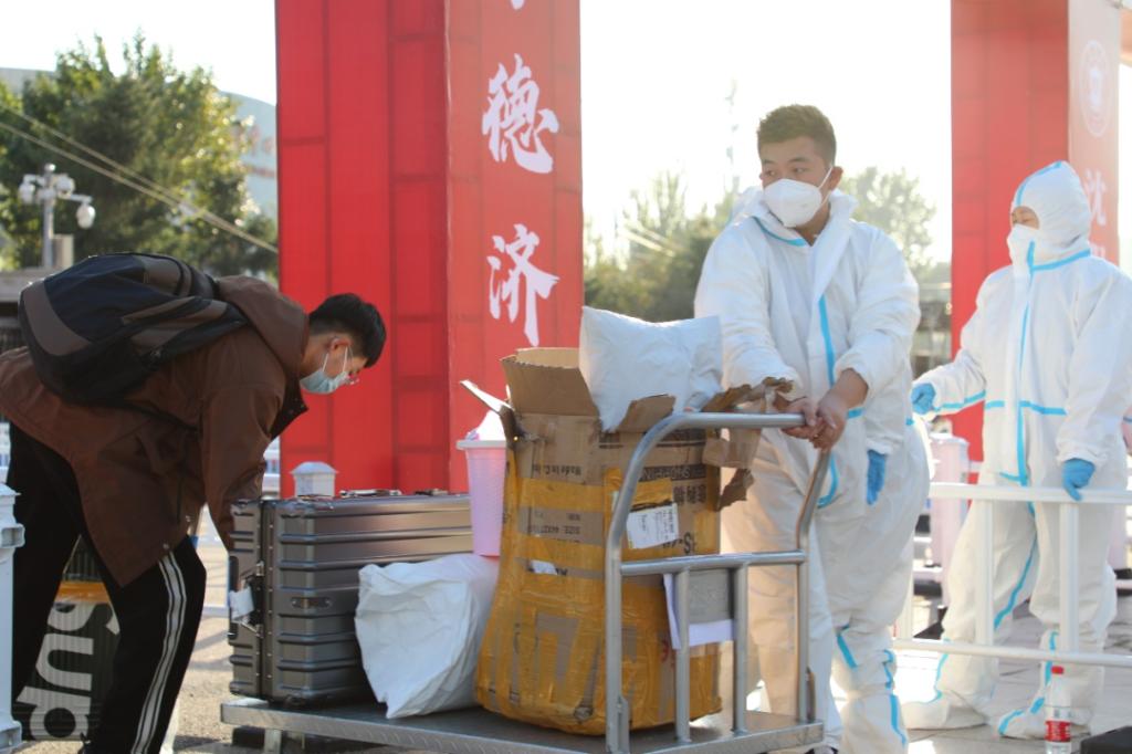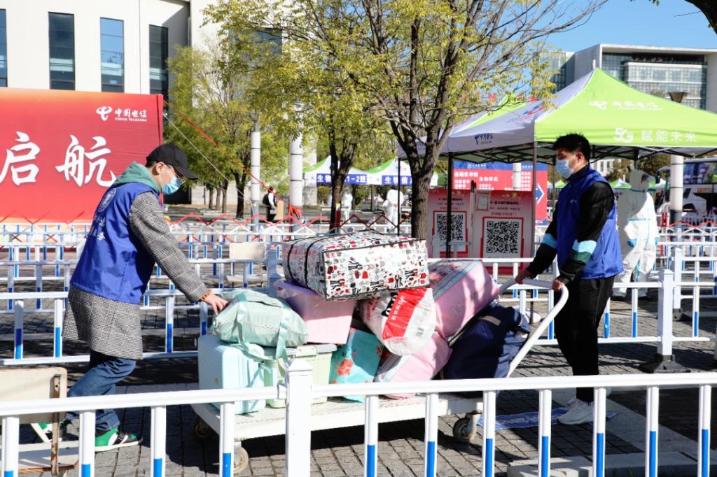 搬运行李、核对身份信息,查验健康码、行程码,检查核酸报告……志愿者们忙碌却一丝不苟。