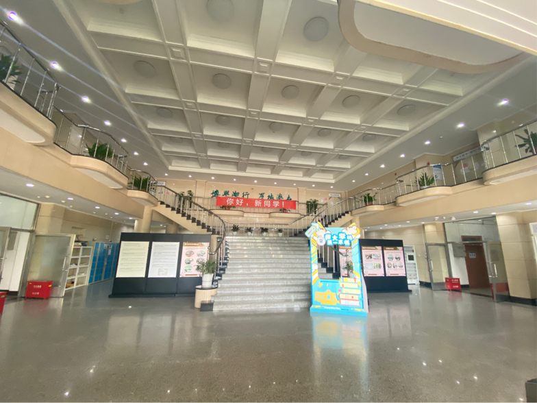 进入图书馆,首先映入眼帘的是整洁的环境和喜庆的迎新条幅。