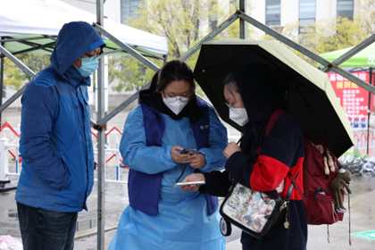 当你披着月光走进校园,值夜的老师和志愿者快速核对入校手续,严格登记消杀,24小时核酸检测服务,全力呵护师生健康安全。