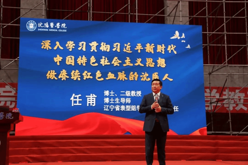 最后,任甫教授鼓励同学们“做赓续红色血脉的沈医人,在实现民族复兴的赛道上奋勇争先”。他向同学们提出三点希望:一是立鸿鹄之志——“心有所信,方能行远。”“共莫更初志,俱期立后名。”当代青年学生逢盛世、重任在肩,作为承担国家民族希望的年轻人,更要有崇高的理想追求,将个人成长融入时代发展,以大视野、大格局洞察世界的形与势,把握中国的形与势,从中找准精神坐标、发展坐标和人生坐标;二是修济世之德——“明礼修身,厚德笃行。”才者,德之资也;德者,才之帅也。青年学生要坚守价值追求,主动“扣好人生第一粒扣子”,在自觉践行社会主义核心价值观中做表率、树榜样,将核心价值观内化为精神追求,外化为行动自觉。要从中华优秀传统美德中汲取养分,锤炼高尚思想品格,崇德修身,启润青春;三是具栋梁之才——“出于其类,拔乎其萃。”“少年易老学难成,一寸光阴不可轻。”“道虽迩,不行不至;事虽小,不为不成。”同学们要始终牢记“健康所系,性命相托”的医学生誓言,不断增强学习紧迫感,脚踏实地、笃学善思、埋头苦干,将精力集中到专业学习和科学研究上来,以孜孜不倦的求学精神练就本领。