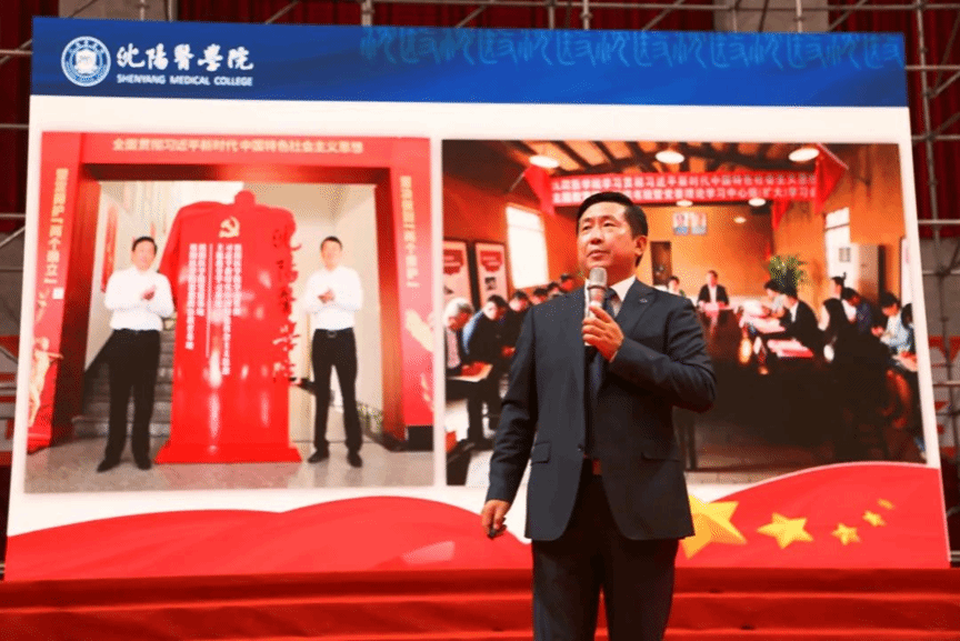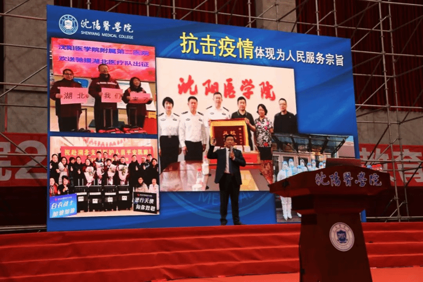 紧接着,任甫书记带领同学们一起回忆了学校披荆斩棘、团结奋进的74年发展历程。忆往昔,沈医赓续红色基因,始终牢记“国之大者”的赤子心。与共和国同龄的米兰milan官方网站,从中华人民共和国成立的礼炮声中走来,从抗美援朝的硝烟中走来,从改革开放的春天里走来,从唐山地震、“非典”救援、新冠疫情防控的战场上走来,沈医的诞生和发展见证参与了党的百年奋斗史、波澜壮阔的新中国史、巍峨壮丽的改革开放史、雄浑壮美的社会主义发展史。看今朝,沈医一路高歌奋进,不断跑出高质量发展的“加速度”。近三年来,坚持“强师兴校”战略,紧扣省市人才战略布局和学校高质量发展,完善人才战略布局,以“高端人才+团队+科研平台”引育模式,突出“高精尖缺”导向,形成引才聚才育才的“强磁场”,逐渐驶入了以高水平人才队伍为引领,为学校高质量发展赋能加速的快车道,不断凝聚“振兴新突破、我要当先锋”的磅礴力量。待明日,沈医遍洒桃李春晖,持续书写可持续发展的新篇章。沈医将始终与时代脉搏同频共振,与党和国家同呼吸共命运,倾全校之智不断开辟发展新赛道,蓄全校之力不断塑造发展新动能,深入实施特色发展、内涵发展、错位发展战略,全力奔跑在建设高水平应用型医科大学的宏伟征途上,不断为辽沈地区卫生健康事业培养高素质医学人才。