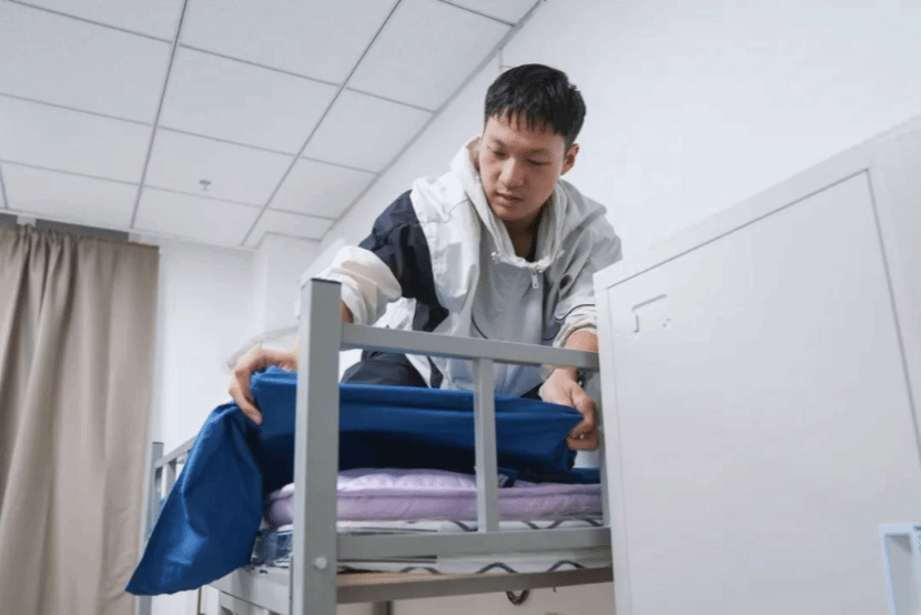2020级临床医学14班张浩说:“由衷感谢学校及临床医学院为我们提供舒适的住宿条件。这里有保安24小时恪尽职守,并配有刷脸门禁机器,让我们有了满满的安全感;免费的热水、洗衣机、空调和自习室等公共设施为学生提供了便利;床铺宽敞整洁、床垫柔软舒适,给学生们带来了良好的睡眠体验。相信在这里,我们会度过一段充实且有意义的新生活!我们会好好学习,拼搏奋斗,努力成长为一名合格的医生,同时也祝愿学校越来越好!”