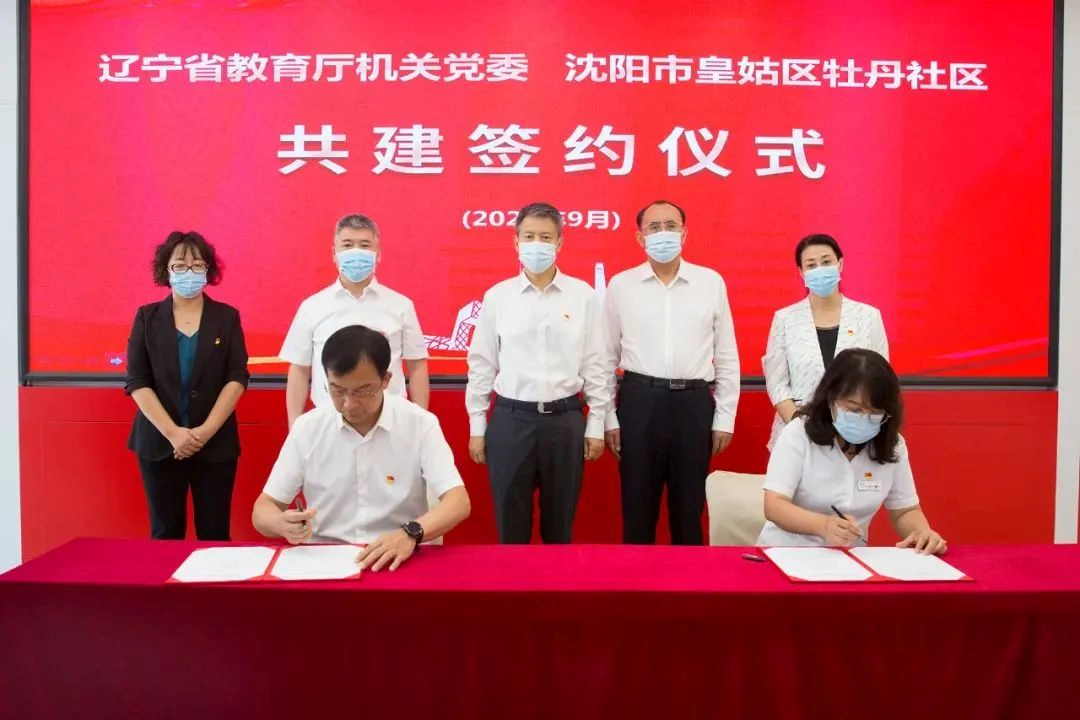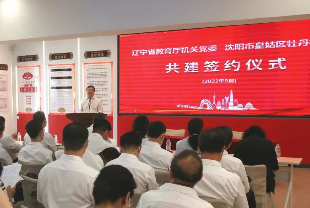 为深入学习贯彻习近平总书记在辽宁考察时重要讲话精神,特别是关于“加强社区服务、提升服务功能”的重要论述,省教育厅机关党委与沈阳市皇姑区牡丹社区深入开展共建活动,聚焦“一老一幼”服务需求,充分发挥教育资源优势,促进老年人生活幸福,促进未成年人身体健康、心理健康、心灵健康。9月13日,省教育厅机关党委与沈阳市皇姑区牡丹社区举行共建签约仪式。省教育厅党组书记、厅长、机关党委书记冯守权,皇姑区牡丹社区党委书记王晖出席签约仪式并讲话。省教育厅机关党委专职副书记龚建斌、皇姑区牡丹社区党委书记王晖代表双方单位现场签约,签约仪式由省教育厅副厅长张国林主持。