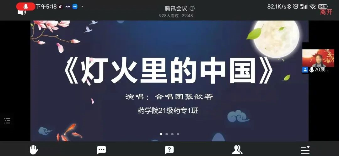 共看明月升,同叙家国情。在迎中秋、感师恩的同时,也正值喜迎党的二十大之际,沈医人用自己的方式祝愿祖国繁荣富强。此次活动通过线上晚会的形式对师生致以节日的问候,在温馨而愉快的氛围中弘扬了中华传统文化,增强了同学们对祖国的深切热爱,为师生们带来了美好且难忘的一晚。