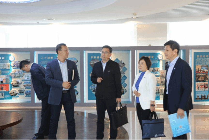 随后,在盘锦市卫健委领导的陪同下,吴玉东校长一行人到盘锦市中心医院、辽油宝石花医院进行参观走访。