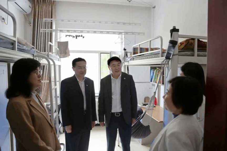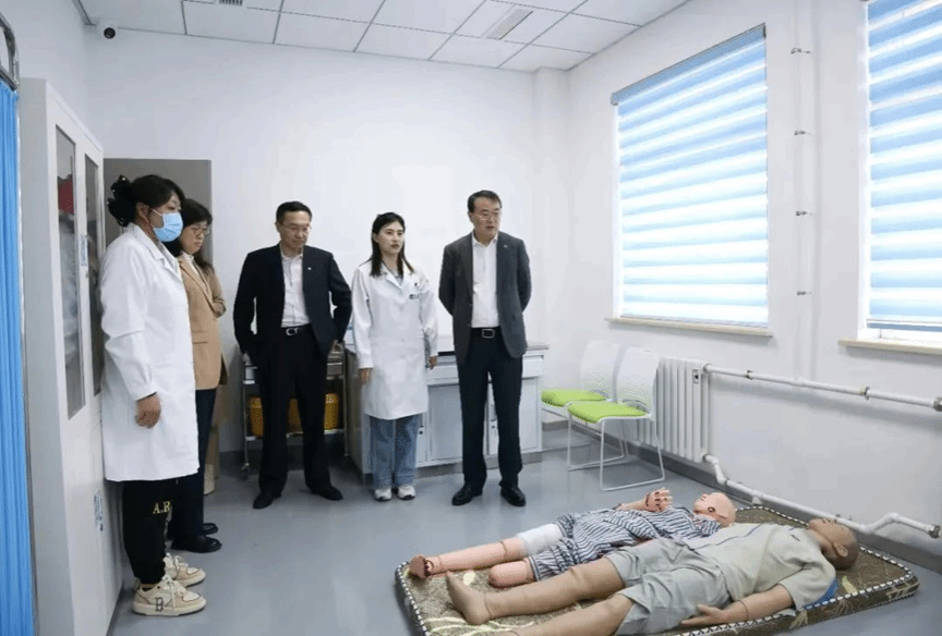 在盘锦市中心医院,参观走访了院史馆、红色教育长廊、门急诊大厅、内外科病房以及学生实践实训中心、图书馆和公寓。
