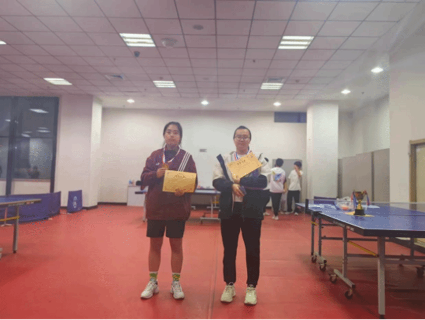 本次比赛共有40余名选手参加,学院为此次活动做了充分的策划,制定了规范细致的比赛流程和比赛规则,赛项分为男子单打、女子单打以及团体比赛。比赛现场精彩纷呈,气氛热烈。场上选手技术高超,动作灵活,推挡球、削球、搓球、弧圈球,技巧娴熟;发球强攻、侧身拉球、直板横打、攻球扣杀,战术多变。场外拉拉队员摇旗呐喊,加油欢呼。经过紧张激烈的对决,2022级临床医学胡金涛、金宴同技压群雄,一举夺得男女单打冠军,同时金宴同带领的团队摘得团体冠军。
