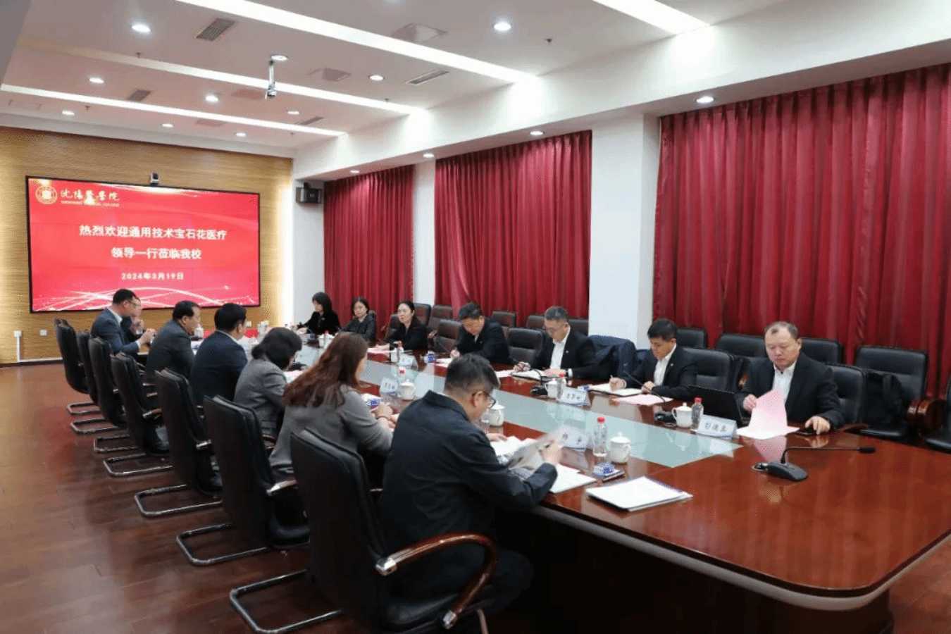 近日,通用技术宝石花医疗董事长王旸,总会计师、党委委员牟东平一行8人来校交流座谈。学校党委书记任甫,党委副书记、院长吴玉东,副院长李荣梅以及相关职能处室和院系负责人出席座谈会。
