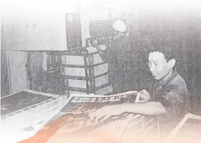 北京一家印刷厂的工人们印制庆祝十二大召开的宣传画。