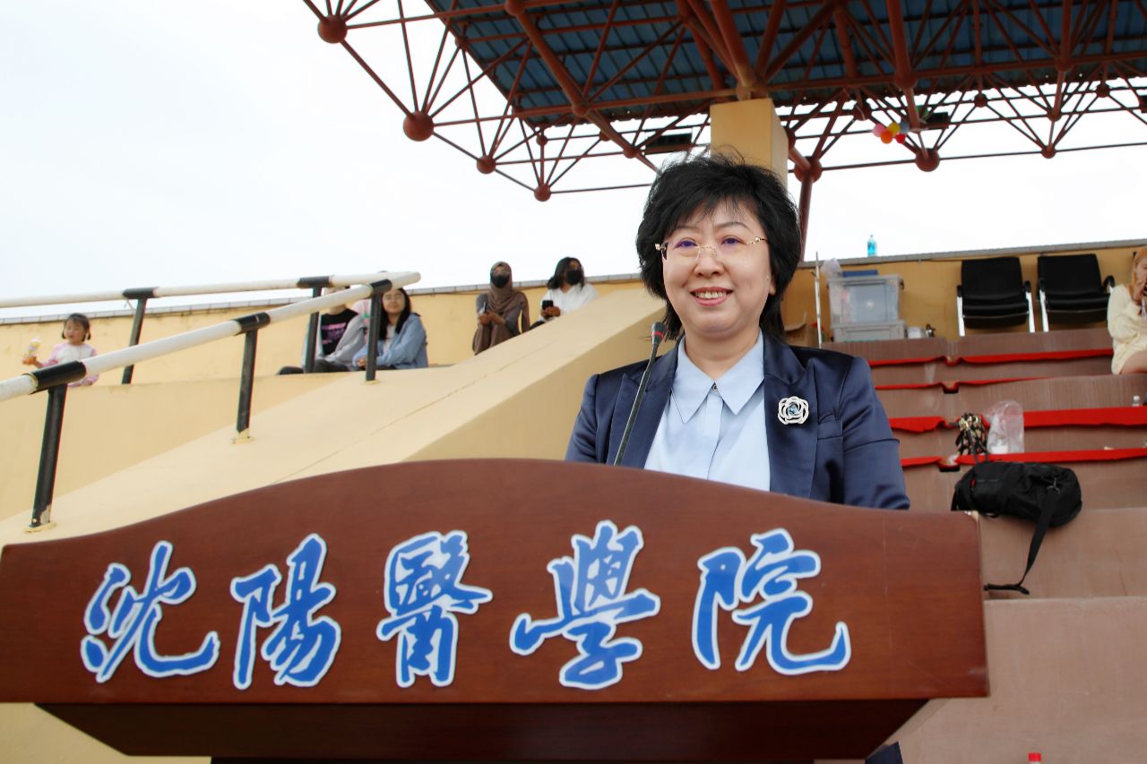 吴际副院长致闭幕词。她首先代表学校领导班子及大会组委会向比赛中取得优异成绩的团队和运动员们表示热烈的祝贺,向精心组织、辛勤付出的全体工作人员致以崇高的敬意,向参会的全体观众表示衷心的感谢!她指出,两天激烈紧张的竞赛,隆重热烈、精彩圆满,取得了运动成绩和精神文明双丰收。她希望,全体沈医人将体育运动中坚韧不拔的意志、顽强拼搏的作风、团结互助的精神厚植到工作和学习中去,进一步汇聚攻坚克难的勇气和斗志,以实干的精神和饱满的激情共同谱写学校高质量发展新篇章,用优异成绩为建校75周年献礼!