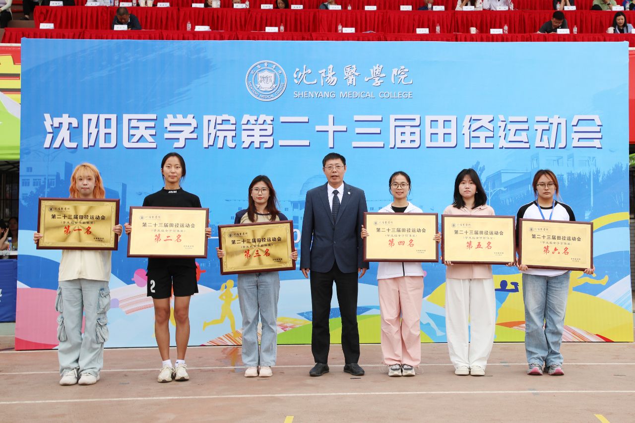 学校党委副书记、院长吴玉东为附属卫生学校学生组女子团体奖获奖单位和优秀组织奖获奖单位颁发奖状。