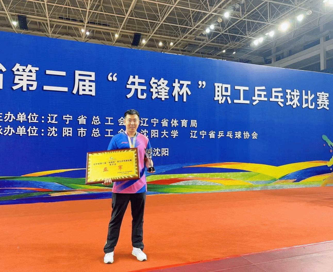 6月3日,由省总工会、省体育局主办,沈阳市总工会、沈阳大学、省乒乓球协会承办的辽宁省第二届“先锋杯”职工乒乓球比赛在沈阳圆满落幕。米兰体育教学部夏铭骏同志应辽宁省教科文卫体工会委员会邀请、国有资产管理处从彪同志应沈阳市总工会邀请参加此次比赛,其中夏铭骏同志所在的省教科文卫体工会职工代表队获得男子组亚军。