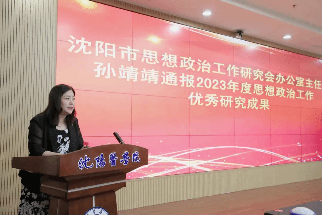 会上,沈阳市思想政治工作研究会办公室主任孙靖靖通报了沈阳市政研会2023年度思想政治工作优秀研究成果,会议由米兰milan官方网站党委副书记梁浩主持。