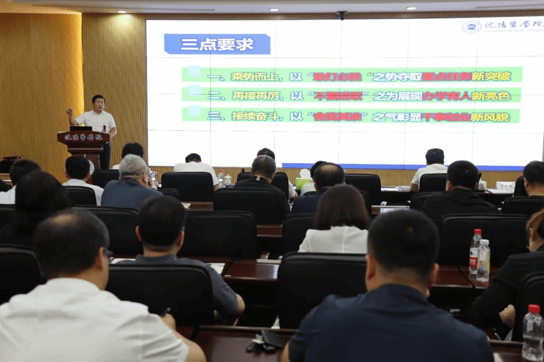 近日,学校在致远楼第一会议室召开振兴新突破三年行动推进会暨2024年下半年工作部署会。学校党委书记任甫主持会议并讲话,党委副书记、校长吴玉东部署2024年下半年重点工作。学校领导班子全体成员,各职能部门负责人、各二级学院院长、党总支部书记出席会议。