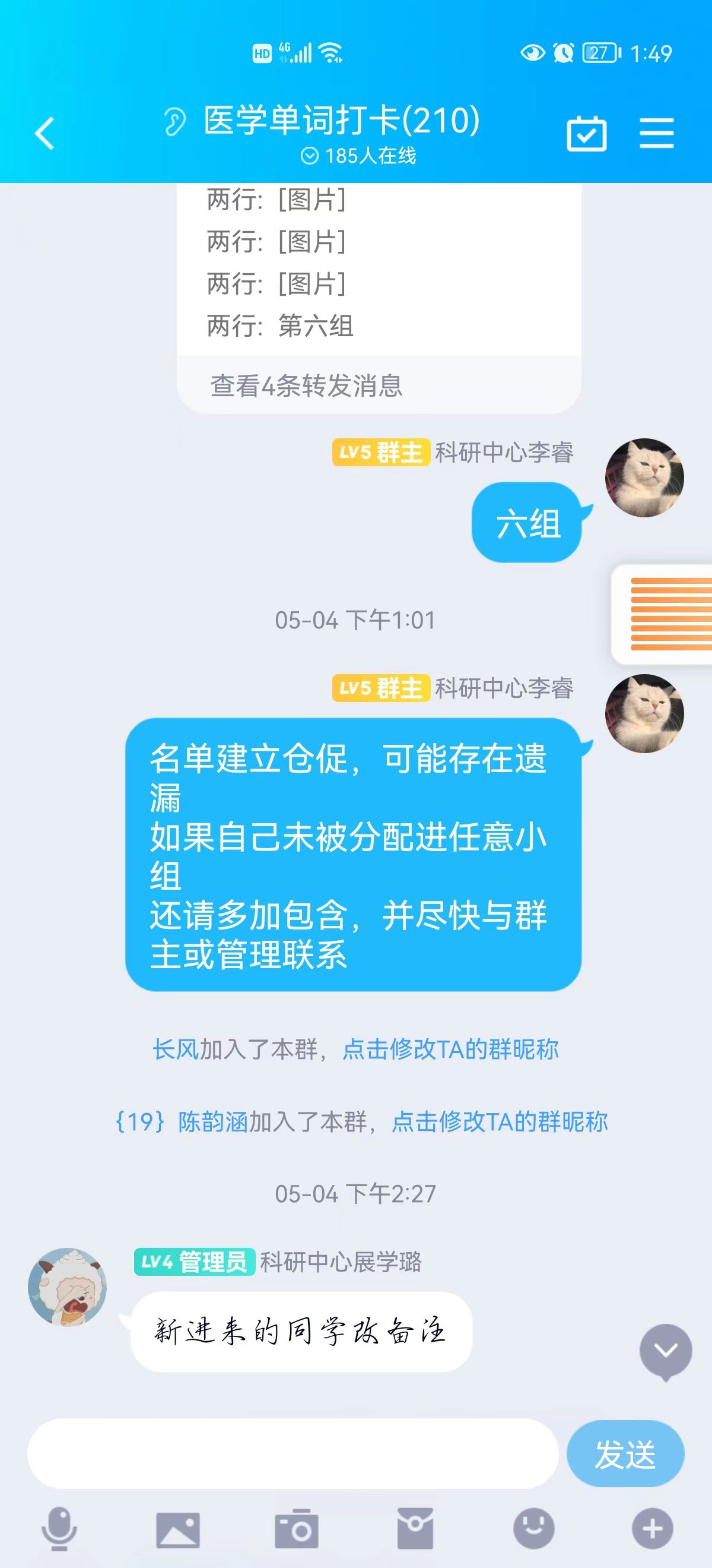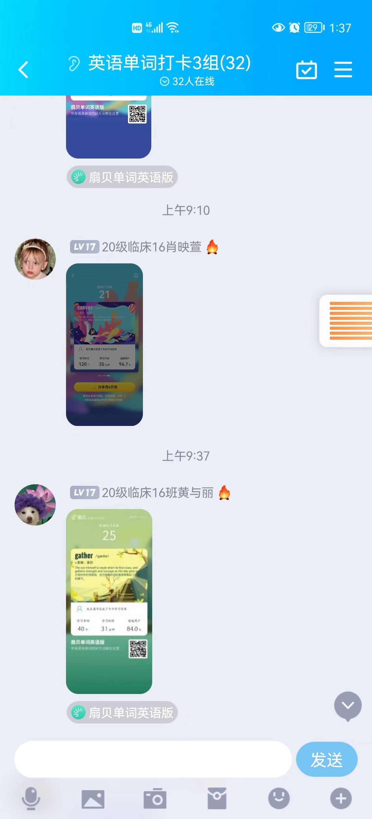本次活动分为10组,共300余人在线全程参与。参加的同学每天通过APP学习单词,并将学习成果截图发送到小组群,工作人员负责统计打卡名单、解答疑问和督促学习。同学们在不断的积累中强化能力、提升自我。