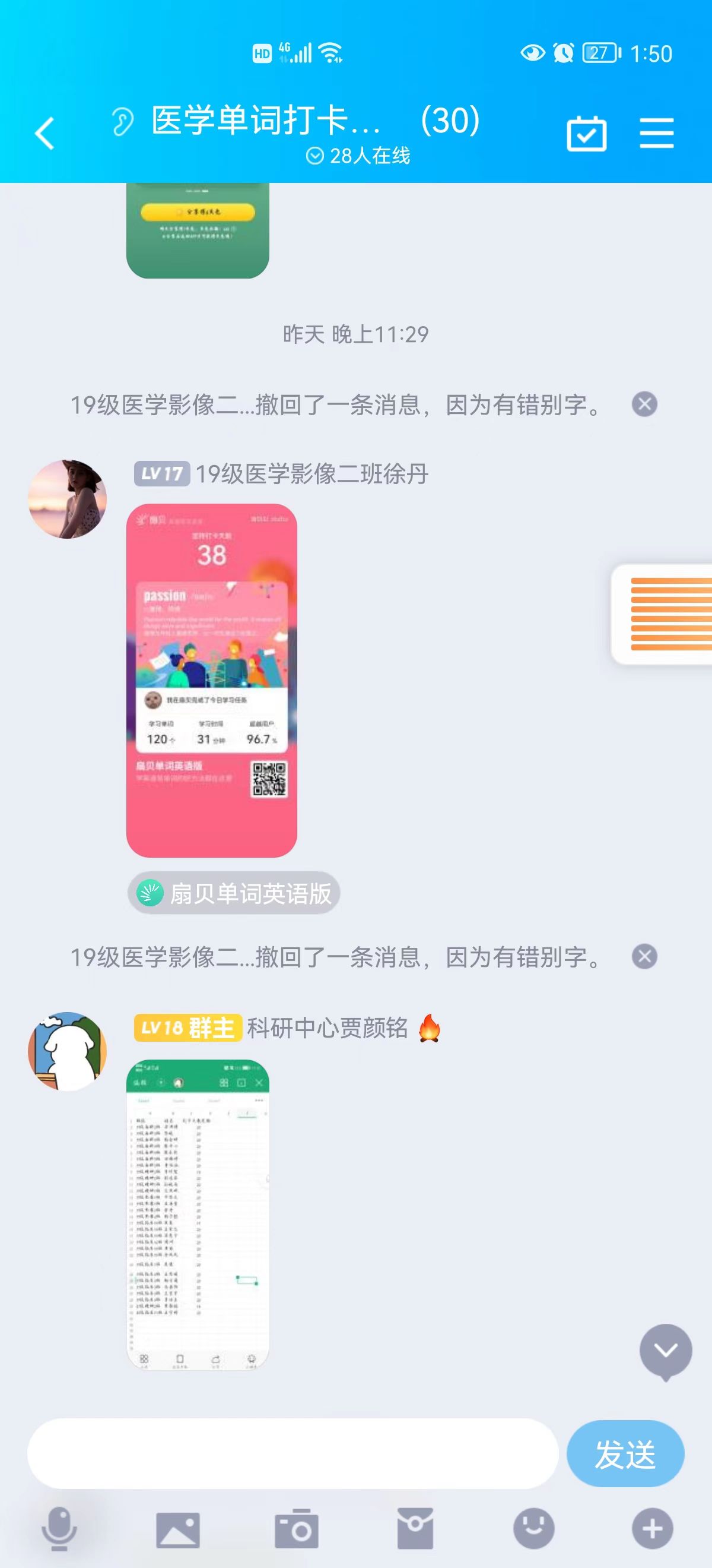 为激发大学生的学习热情,促进同学们养成良好的学习习惯,拓宽学习内容,夯实英语基础,近日,基础医学院开展了“21天医学单词打卡”活动。