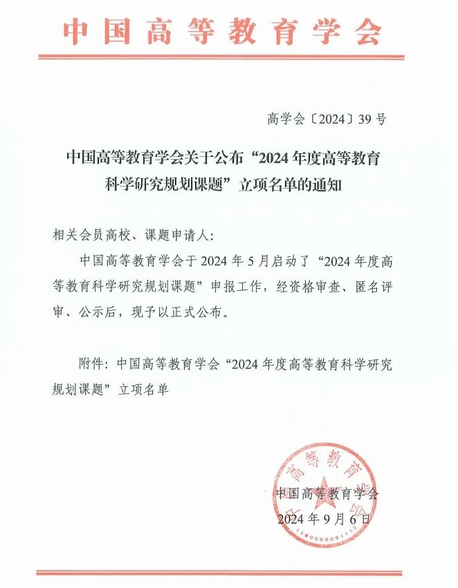 近日,中国高等教育学会公布了“2024年度高等教育科学研究规划课题”立项结果,米兰3项课题获得立项。其中重点课题2项,一般课题1项,立项数量位列全省高校前列。