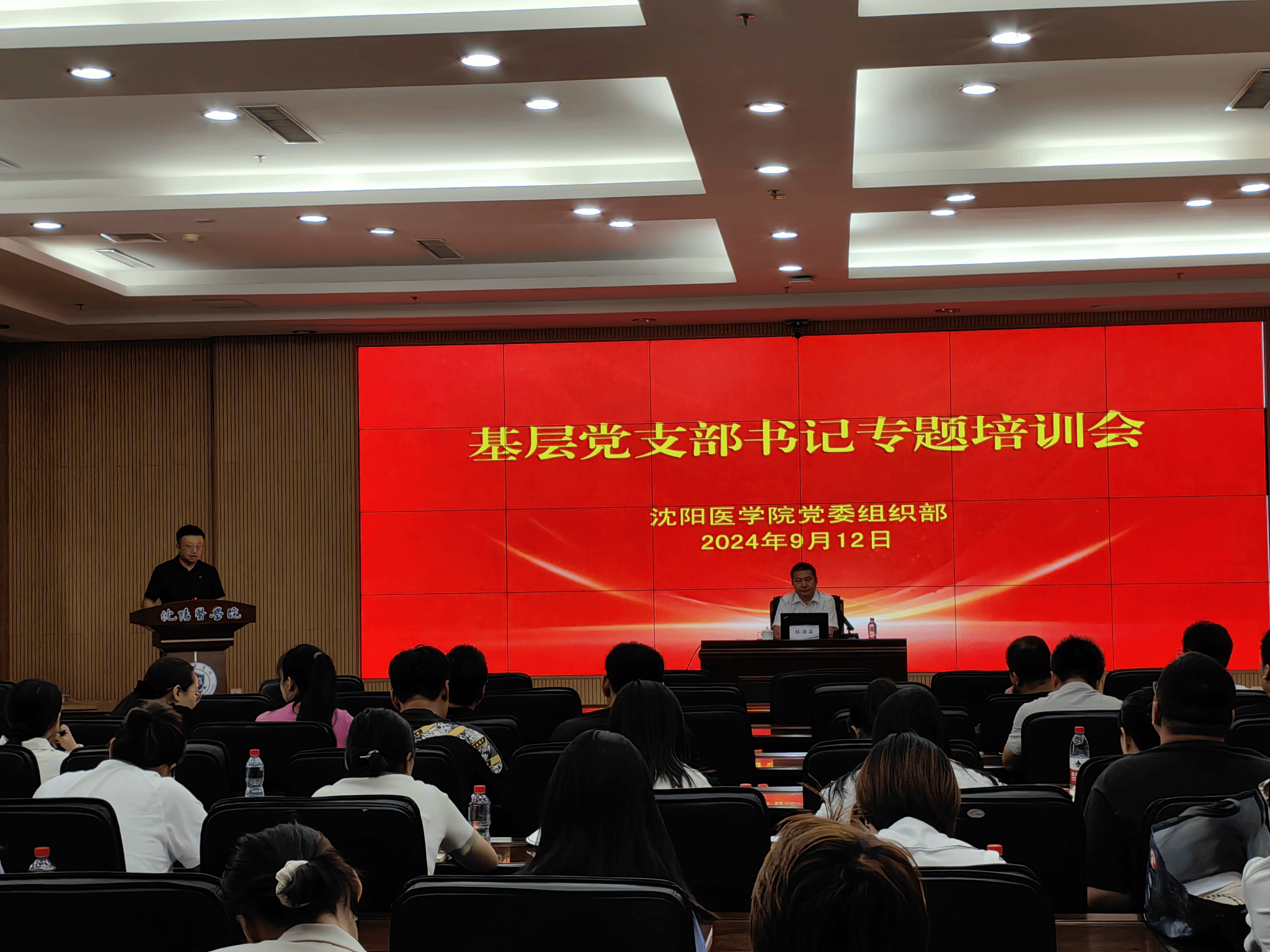为贯彻落实习近平总书记对党的建设和干部工作的重要指示要求,切实提高学校基层党务干部队伍的理论素养和履职能力,9月12日下午,党委组织部组织开展全校基层党支部书记专题培训会。本次培训邀请沈阳航空航天大学招标采购办公室党支部书记林海森同志为我们作题为《业务要真懂 落实要真干 业绩要真为 大力提升高校基层党支部建设质量和水平》的专题讲座。党委组织部部长赵明哲主持会议。全校各基层党支部书记参加会议。
