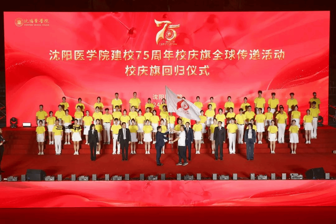 同心同德同传一面校庆旗,载歌载舞共迎七十五华诞!2024年6月28日,校庆旗全球传递活动正式开启。这面承载着沈医发展历史的旗帜,从沈阳启程,历时75天,跨越万水千山,传遍亚洲、欧洲、北美洲、大洋洲、非洲五大洲,飘扬在10个国家,14个省,35个市 ,行程总计10.65万公里。9月19日,近万名校友代表参与的校庆旗全球传递回到了传旗始发站——沈阳站,由党委书记任甫教授接回校庆旗,并宣布:“米兰milan官方网站建校75周年校庆旗全球传递圆满收官!”旗帜在,责任在,这不仅是全球沈医校友对母校的深情宣言,也是全体沈医人必须牢记的铮铮誓言。