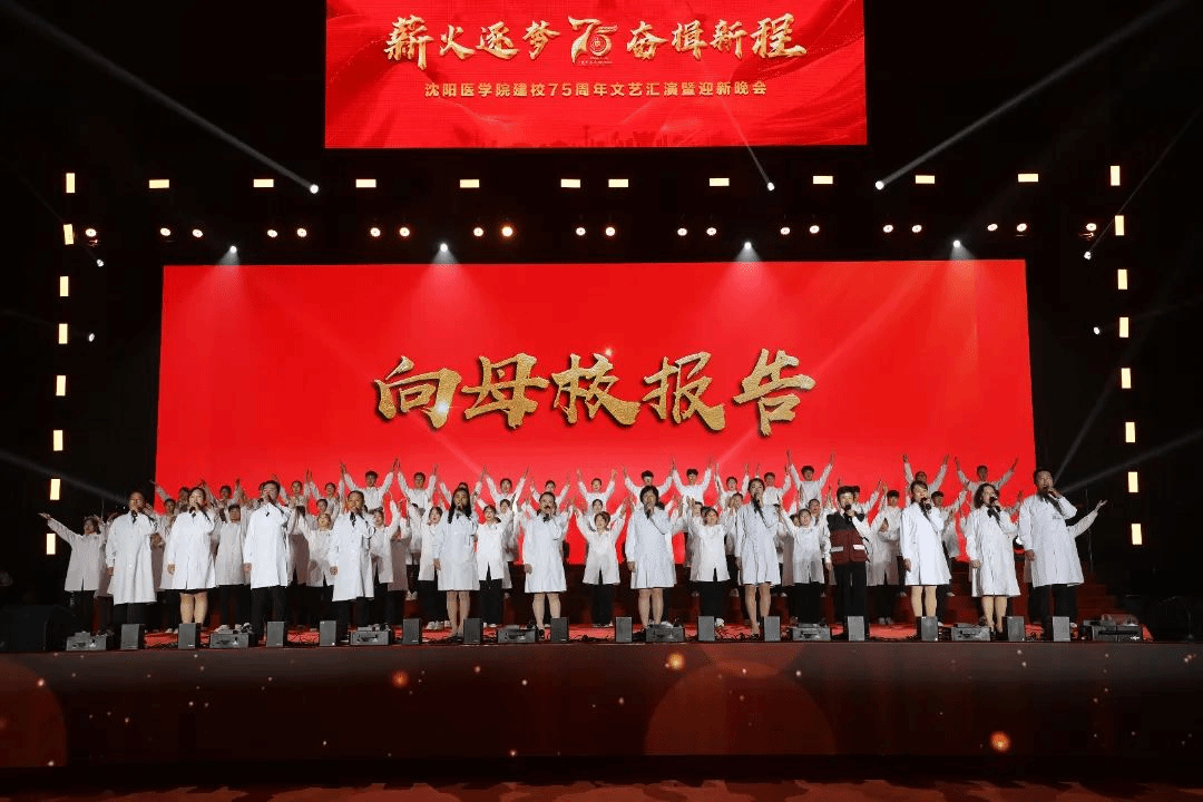 学校领导、各界校友、全校师生同唱校歌,用歌声传递梦想,凝聚力量。回首学校75年发展史,历代沈医人励精图治、锐意进取,以汗水浇灌收获、以实干笃定前行,实现了一次又一次跨越。