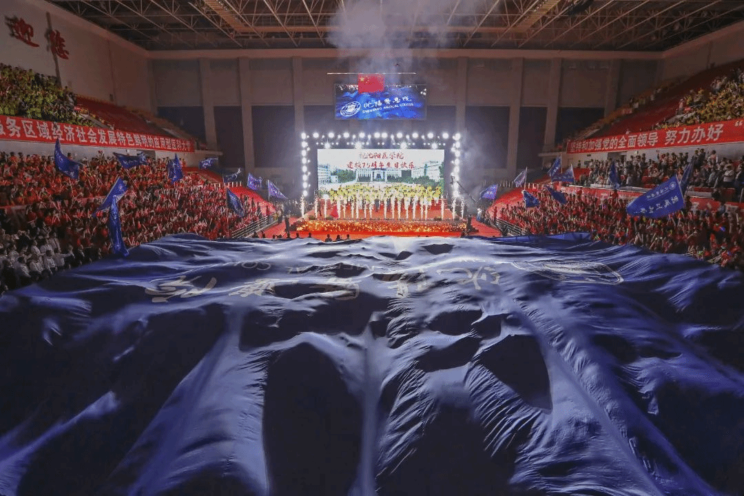 9月19日晚7时,米兰milan官方网站建校75周年文艺汇演暨迎新晚会在体育馆盛大举行。米兰milan官方网站杰出校友、1985届毕业生、第41届南丁格尔奖章获得者、新疆医科大学第一附属医院主任护师聂淑娟校友,学校领导班子成员、各届校友、师生员工等4000余人一同现场观看演出。文艺汇演同步进行网上直播,海内外全体沈医人“云端”相聚、共襄盛会。