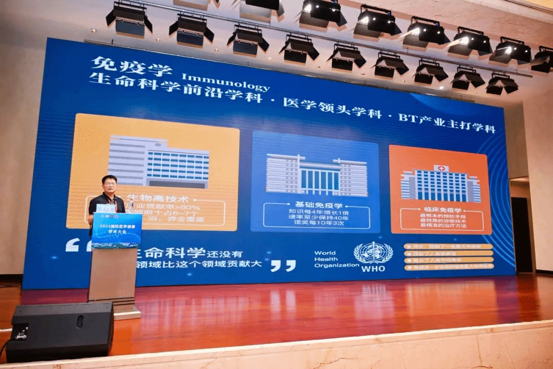 陆军军医大学专业技术少将教授,中国工程院院士、中国医学科学院学部委员、中国免疫学会理事长、亚大免疫学联盟执委,国家工程实验室主任吴玉章院士为大会作了题为“人体免疫力:解码、评估、干预和重建”报告。吴玉章院士以其深厚的学术底蕴、卓越的科研成就和宽广的国际视野,为大家深刻揭示了人体免疫力的奥秘,展现了我国在生命科学领域取得的重大进展与突出贡献。不仅是对科学技术的一次高水平展示,更是对我国科技创新驱动发展战略的生动实践,彰显了我国在生命科学及免疫学研究领域的国际领先地位。