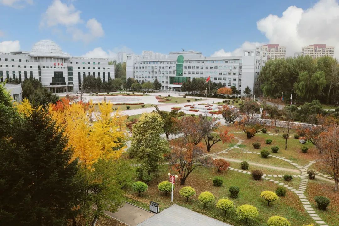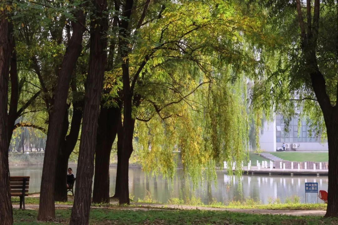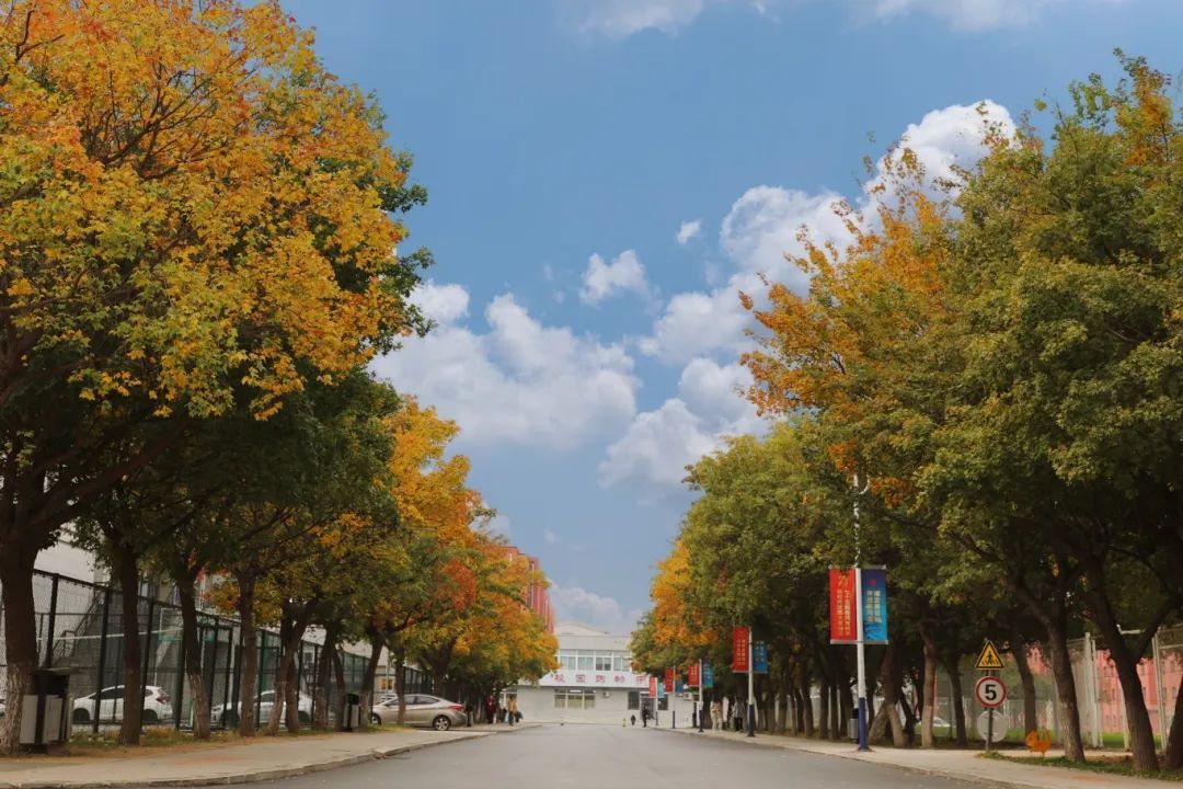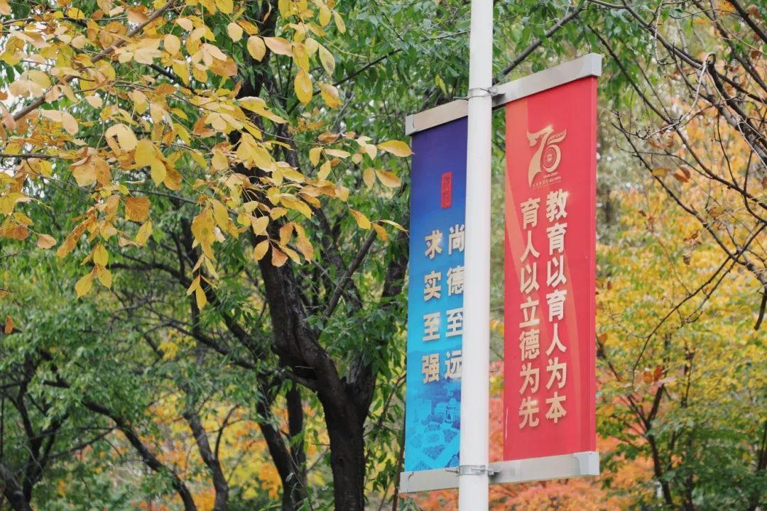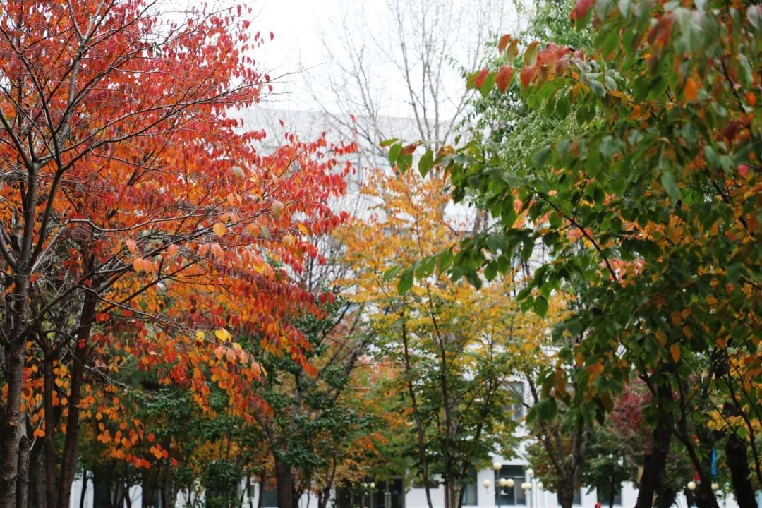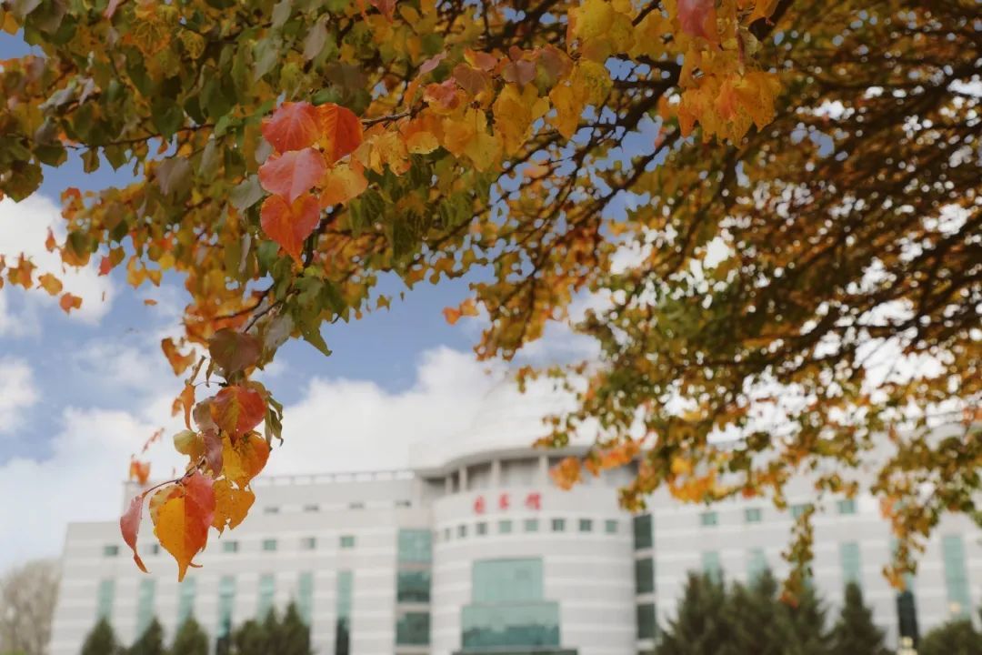 秋阳温柔,金黄叶落。第二教学楼,静谧于秋色斑斓中。白墙红标的建筑里,传出朗朗的读书声,与红黄相间的树木掺杂,交织出自然与人文相和谐的梦境。
