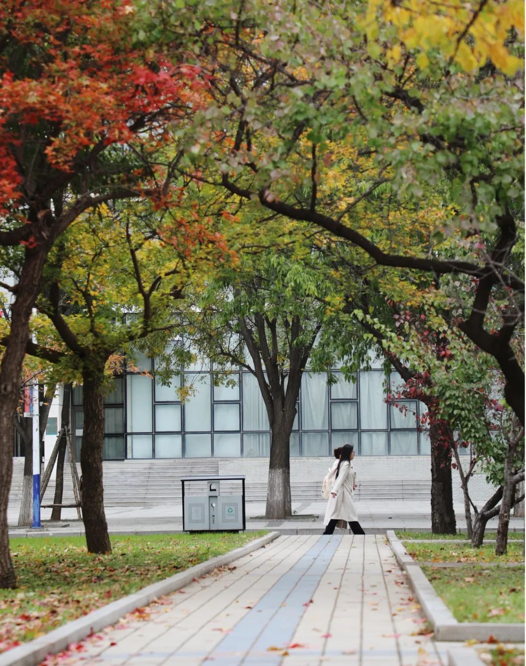 秋天的阳光醇厚柔润,在校园的庭院间流淌,渲染出一片金黄,随风飘散的落叶宛如翩翩起舞的蝴蝶,为这宁静的秋色增添了一丝动人的韵味。