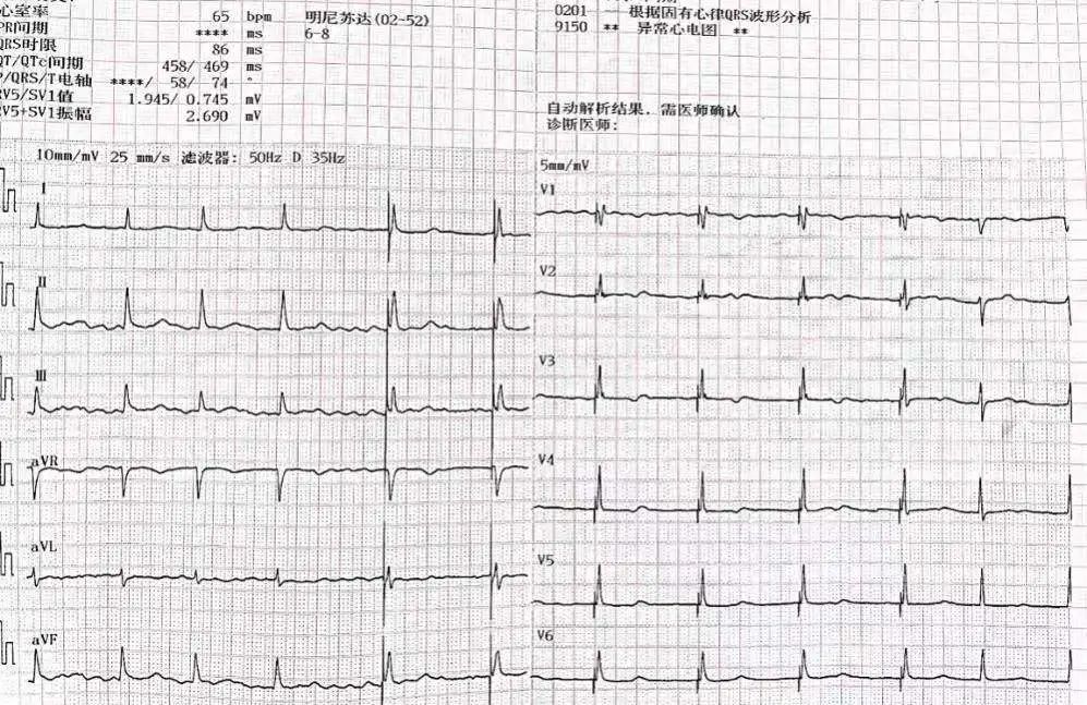 起搏后的QRS波仅为110ms,V5达峰时间为57ms。