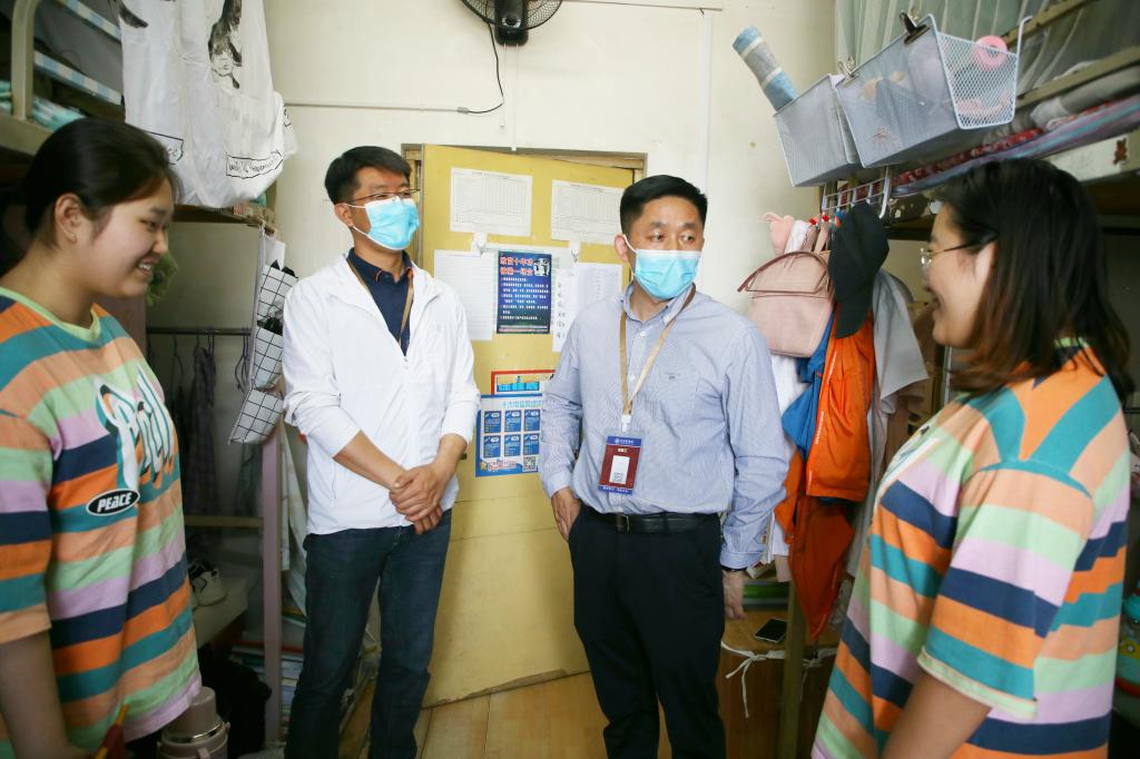本次检查主要针对在校毕业生宿舍卫生、违规电器等情况和潜在安全隐患进行仔细排查。检查中,韦家勇处长对公共卫生学院、药学院在校毕业生寝室逐一查看,教育引导同学们要增强安全防火意识,时刻提高警惕,在思想上重视文明行为习惯养成,并亲切地询问毕业生论文答辩以及求职就业等情况。在校毕业生们纷纷表示将严格遵守学校和二级学院的各项规章制度,做到安全文明离校。