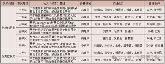 学校高度重视此次比赛,药学院秉持“赛教结合、以赛促教、以赛促学”的教学理念,积极备赛参赛。药学院张新越、龙微两名同学主持的项目进入决赛。经过与大连理工大学、沈阳药科大学、辽宁大学、辽宁中医药大学等11所高校队伍进行激烈角逐,两支队伍分别荣获创新成果一等奖、二等奖,同时获优秀壁报二等奖两项。此外,药学院还有四支队伍获本次大赛创新成果三等奖,充分展示沈医药学学子的创新成果和风采。