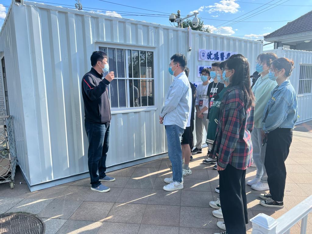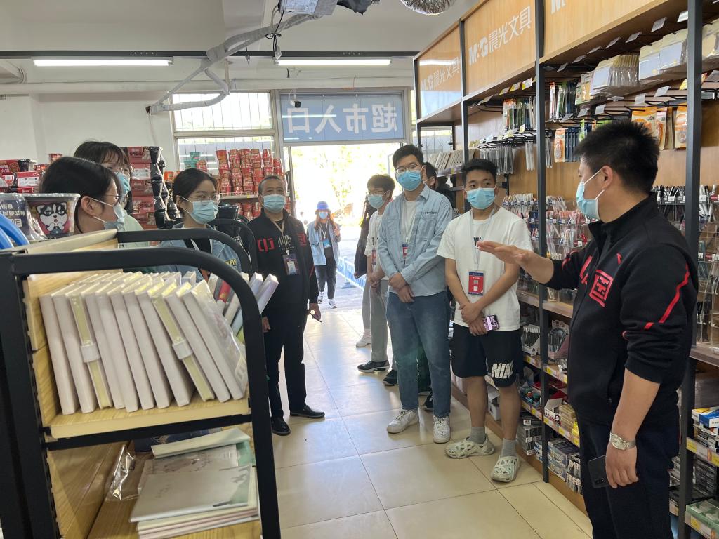 学生们在李刚处长带领下,依次参观了物流快递的一次、二次和三次消杀区,食材转运站消杀区和学校超市。李刚处长讲解各区域详细运行情况,详细地向学生们说明了物流快递和食材转运站消杀区的消毒操作流程。在参观校园超市期间,带领学生了解学校对超市的检查制度和规范要求,李刚处长积极征求学生们的意见,并让学生对超市价格予以监督。