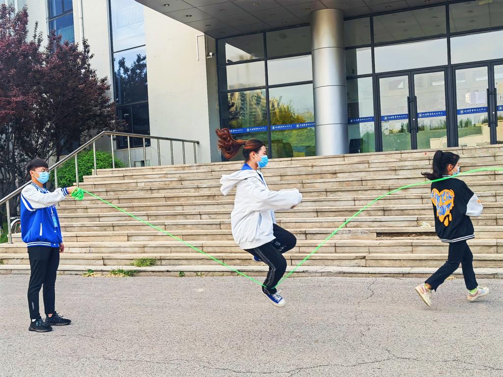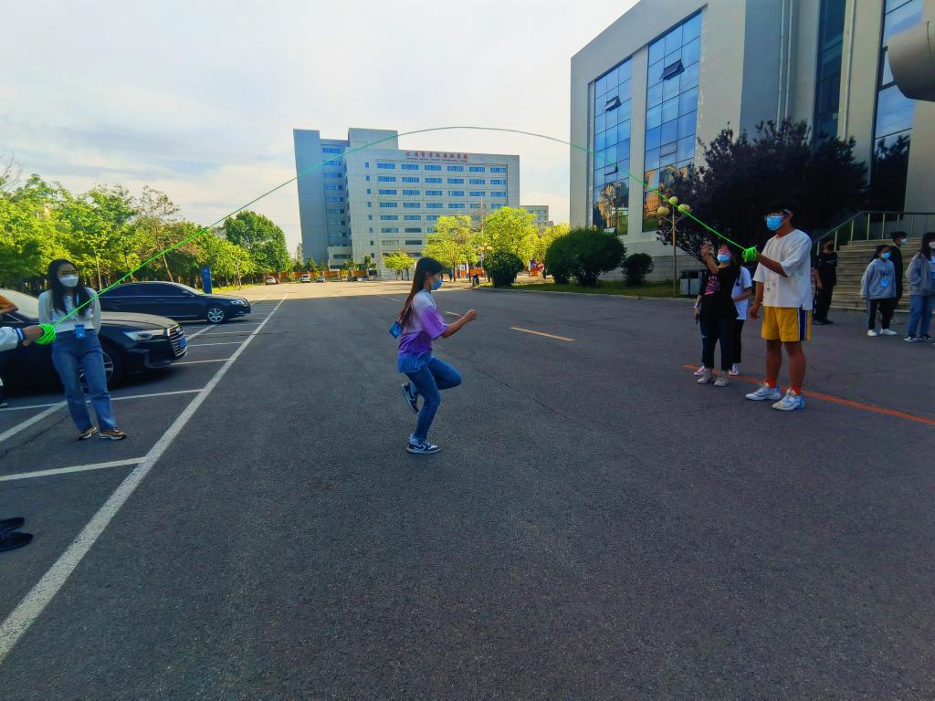 此次活动严格按照学校防疫要求,参与师生保持安全距离并正确佩戴口罩和胸牌。活动共为两个部分:第一部分为“八字跳大绳”,充分激发了同学们的集体荣誉感,每个人都拼劲全力为小组争光。第二部分为“一圈到底”,展现同学们的个人素质和默契配合,让大家切实了解到身心素养和学习学业同等重要。