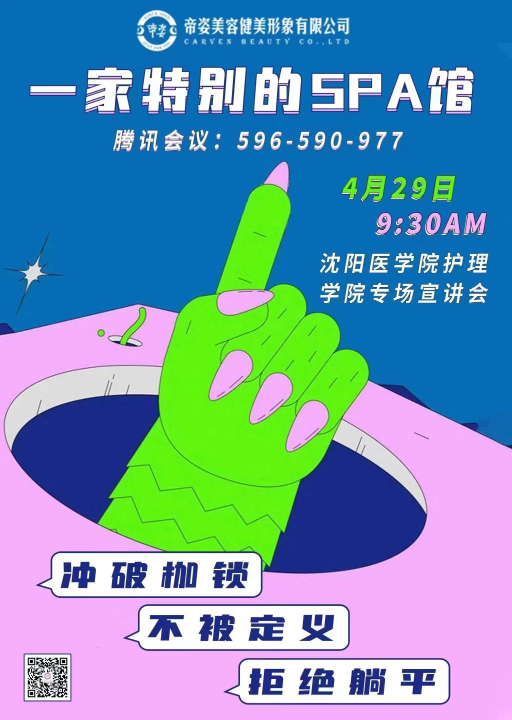 宣讲会上,帝姿美容健美形象有限公司的董事长以“让梦想照进现实”为主题,从企业愿景、使命和价值观三个角度详细介绍了企业文化,让毕业生们对该公司有了一个全面立体的了解。接着,帝姿行政总监王璐从集团简介、SPA的职业素养、护士从业岗位、职业晋升规划以及实习期和转正之后的待遇几个方面对招聘岗位进行了详细的讲解,希望同学们冲破枷锁、不被定义、拒绝躺平,同时还邀请同样身为护理专业毕业的员工介绍了自己入职的初衷和从业感受,让毕业生们对未来的身为护理专业毕业生职业选择更加明晰。