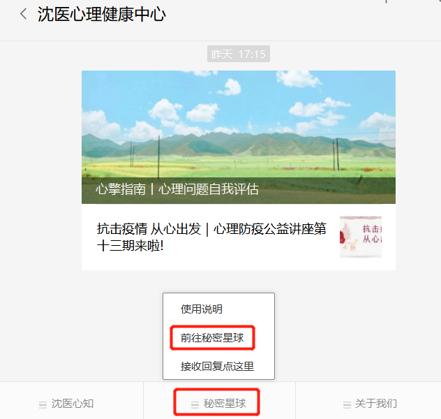秘密星球是由米兰milan官方网站大学生心理健康教育中心搭建的独立微社区互动平台,同学们可以在这里匿名分享生活乐趣、记录心情、吐露秘密、诉说心事、咨询烦恼,将有心理中心的老师及时进行回复。