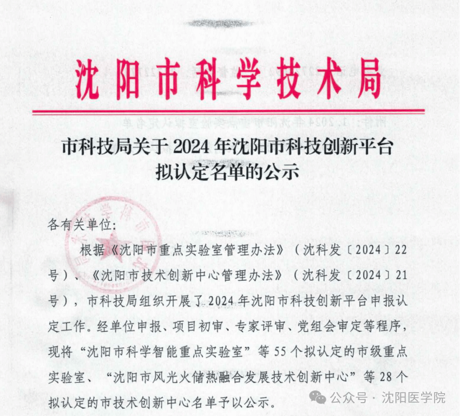 近日,沈阳市科学技术局最新发布《关于2024年沈阳市科技创新平台认定结果的通知》,米兰吴际教授及其团队的心脑慢病评估与营养干预重点实验室和李新教授及其团队的口腔疾病关联系统性重要疾病防治研究重点实验室被认定为沈阳市重点实验室。这是米兰milan官方网站科研平台建设的又一重大突破,标志着学校在相关领域的研究水平迈上了新的台阶!