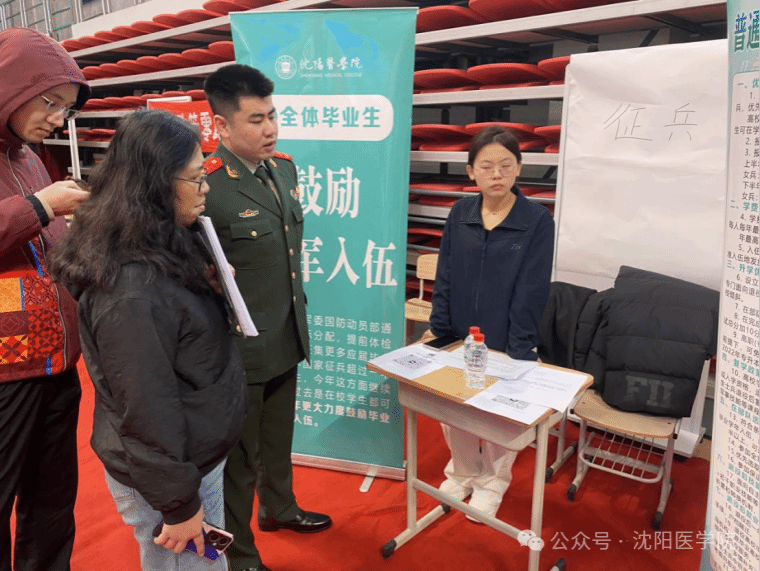 本次招聘会实现政校协同,努力打造就业特色服务体系。辽宁省卫健委及省卫生健康服务中心率12家三甲医院来校举办住培政策专场宣讲;沈阳市人社局联合于洪区人社局组建专业化政策宣讲团,为毕业生逐项解读“兴辽英才计划”“沈阳人才新政”等政策红利;现场还设立征兵咨询专区,邀请现役军官开展“携笔从戎,卫勤报国”主题政策解读,为医学毕业生开辟职业发展新路径。