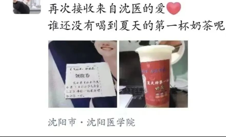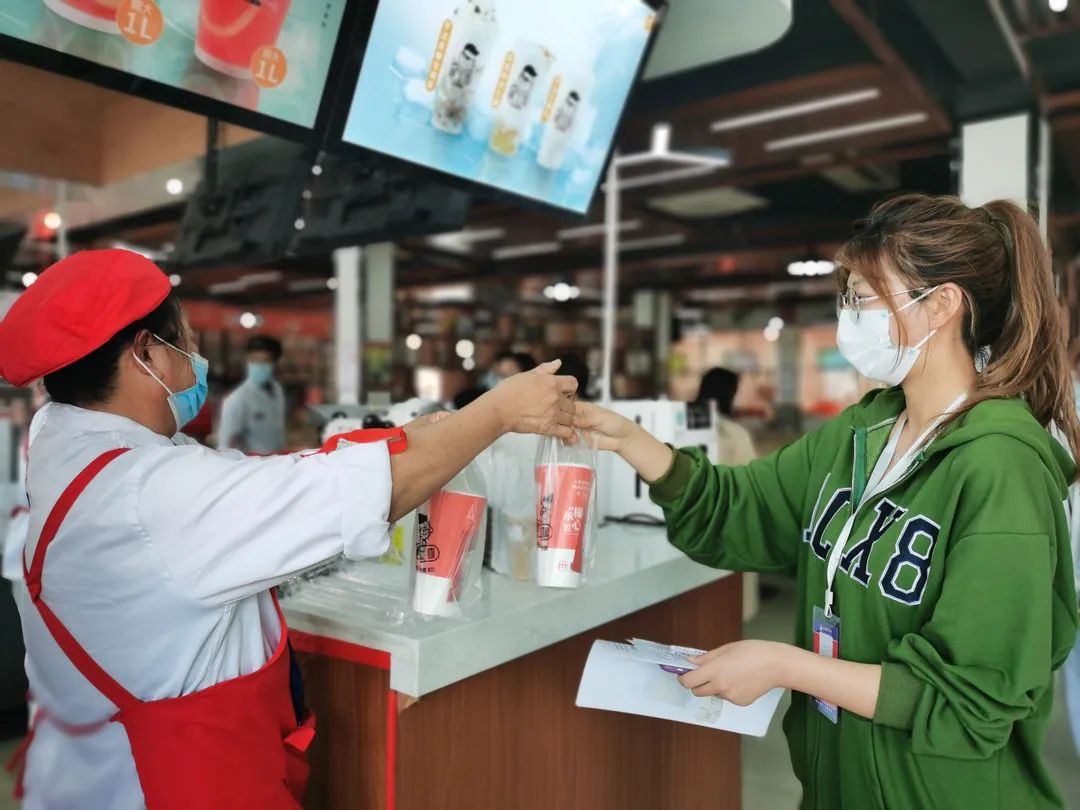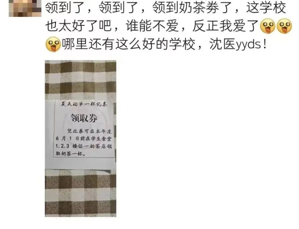 自校园全封闭管理以来,学校高度重视学生学习生活状态,先后推出各类餐饮、生活物资、文化用品打折、馈赠活动,此次“夏天的第一杯奶茶”赠饮活动一经推出便得到了同学们的连番好评。5月4日中午11时30分,食堂各家奶茶店已备好充足的物料迎接第一批学子的到来,同学们按照网格化管理要求,凭票有序到任意档口领取奶茶。为满足不同学生的口味需求,各家奶茶店均提供了等值自选服务。同学们拿到奶茶的喜悦和自豪溢于言表:“友友们还在为夏天没有奶茶而焦虑吗,我已经喝到夏天的第一杯奶茶啦,令人羡慕的是沈医免费提供,我爱沈医!”