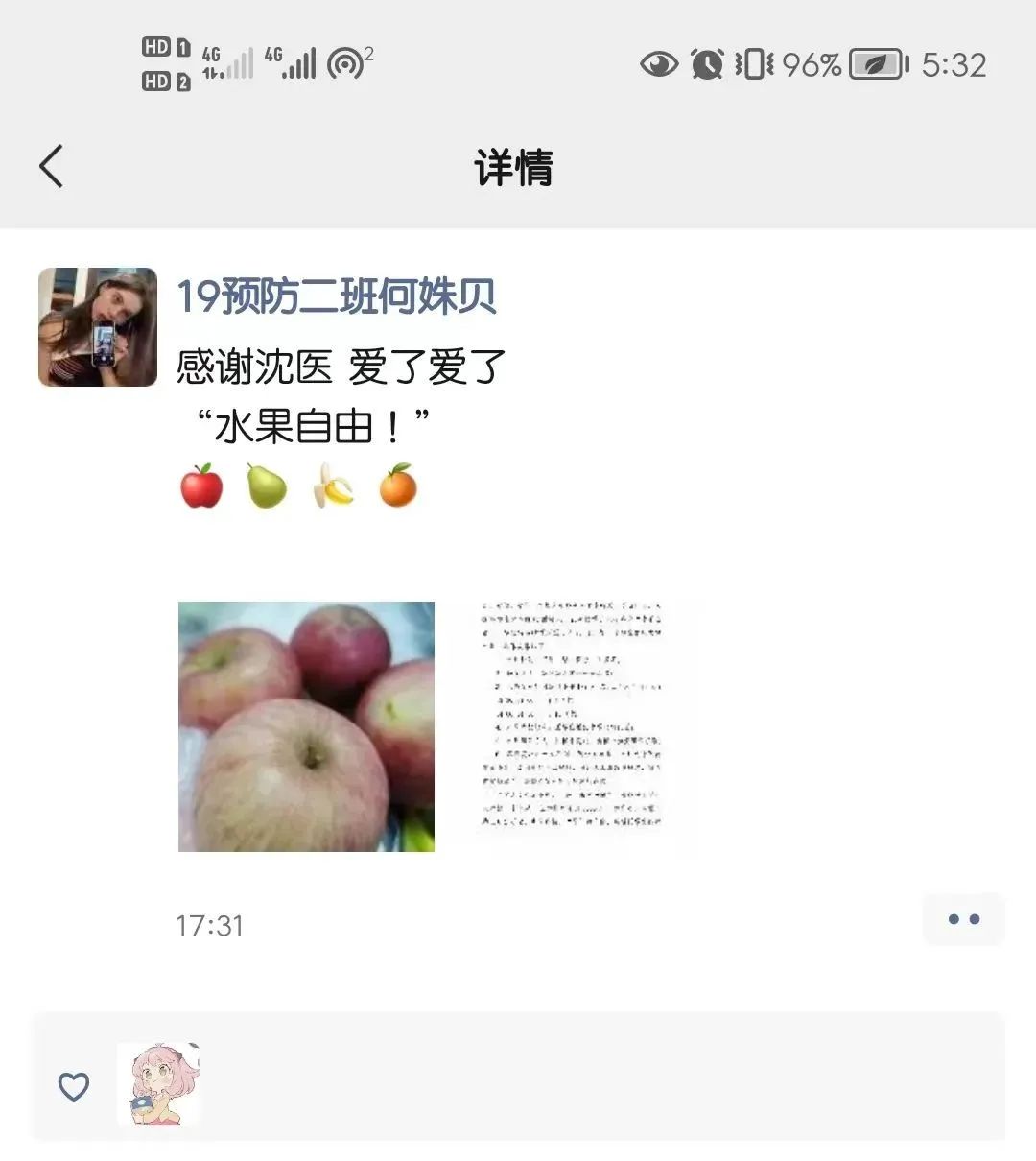 今天,米兰milan官方网站的在校同学从各楼楼长手中,领到了学校免费发放的第一批“开心果”,他们脸上绽放着幸福又自豪的笑容,激动地说:“没想到在疫情防控物资紧缺的时候,学校还能时时记挂着我们,刚刚喝完奶茶,又收到红鲜诱人的苹果、果香浓郁的香蕉、圆滚滚黄澄澄的橘子、梨子,这份“佳果情怀”我们永生难忘,感谢沈医,感谢老师!”