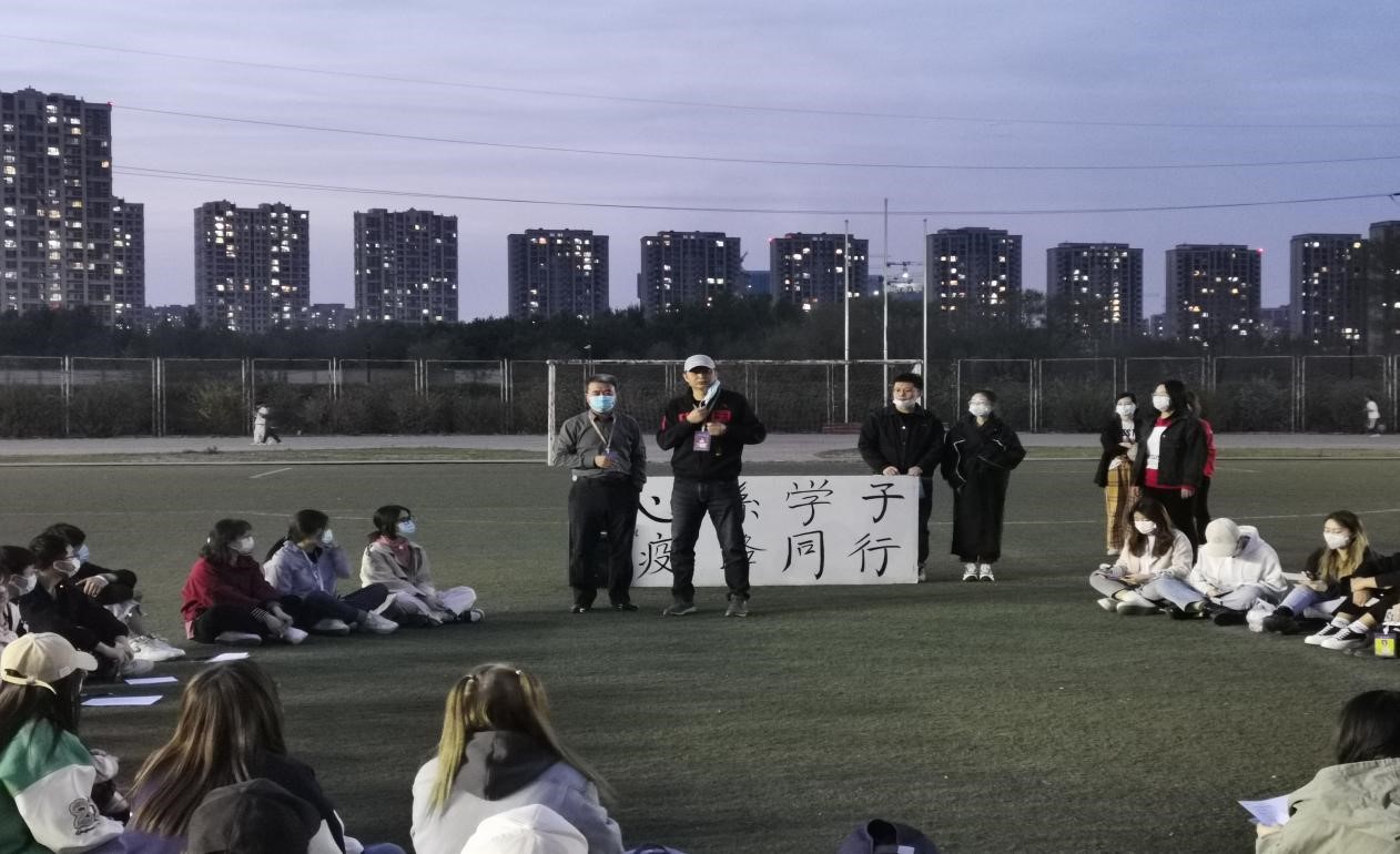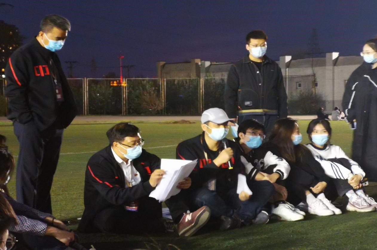 在互动游戏结束后,教务处高松处长组织学生围坐在一起,并让学生们在A4纸上写下要提出的问题。针对同学们提出的问题,教务处高松处长、基础医学院院长张忠教授、中医药学院孙大宇副院长围绕线上线下教学、实习考试以及考研相关问题等方面予以解答。虽然天气微凉,但师生互动气氛热烈。