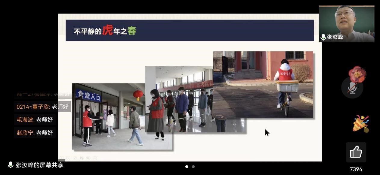 会上,张老师以《不一样的春天》为题,从“虎年不平静之春”切入,通过讲述支援抗震救灾和援鄂抗击疫情的真实生动的事例,重点围绕雷锋志愿服务精神、党员担当奉献精神、青年学子的职责使命等方面进行了深入地诠释解读。张老师从学长的角度分享了自身学生干部经历,呼吁大家要做好老师和同学间的桥梁和纽带,帮助同学们坚定抗疫必胜信心,并用校园封闭期间驻校老师们的“抗疫故事”,号召学生骨干们要勇于担当、能够担当、敢于担当,在疫情大考前书写沈医学子的满意答卷。期间,与会学生针对如何处理学生工作中所遇到的矛盾、如何坚定抗疫必胜信念等具体问题与张老师进行互动交流。