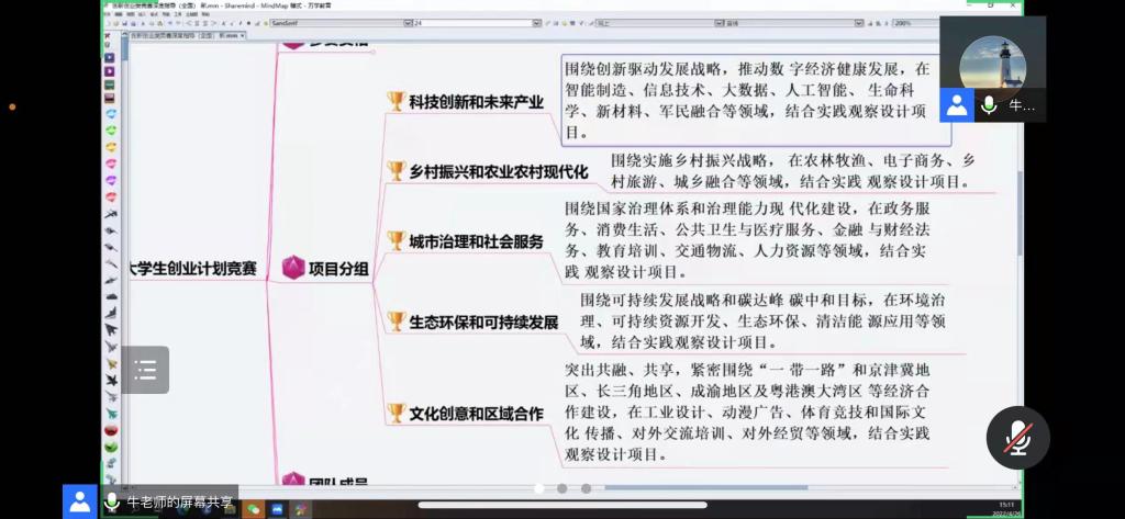 为激发我院学生创新创业意识,让同学们更加深入了解创新创业大赛,推动我院学生参与“挑战杯”全国大学生创业计划大赛的热情,发现、培育和选树更多优秀参赛作品,校团委于4月26日下午15:00举办米兰milan官方网站2022年“挑战杯”大学生创业计划大赛线上辅导培训会。本次辅导培训会由教育部就业创业指导委员会委员、挑战杯国赛评委牛晋老师主讲,全校500余名师生参加了本次培训会。