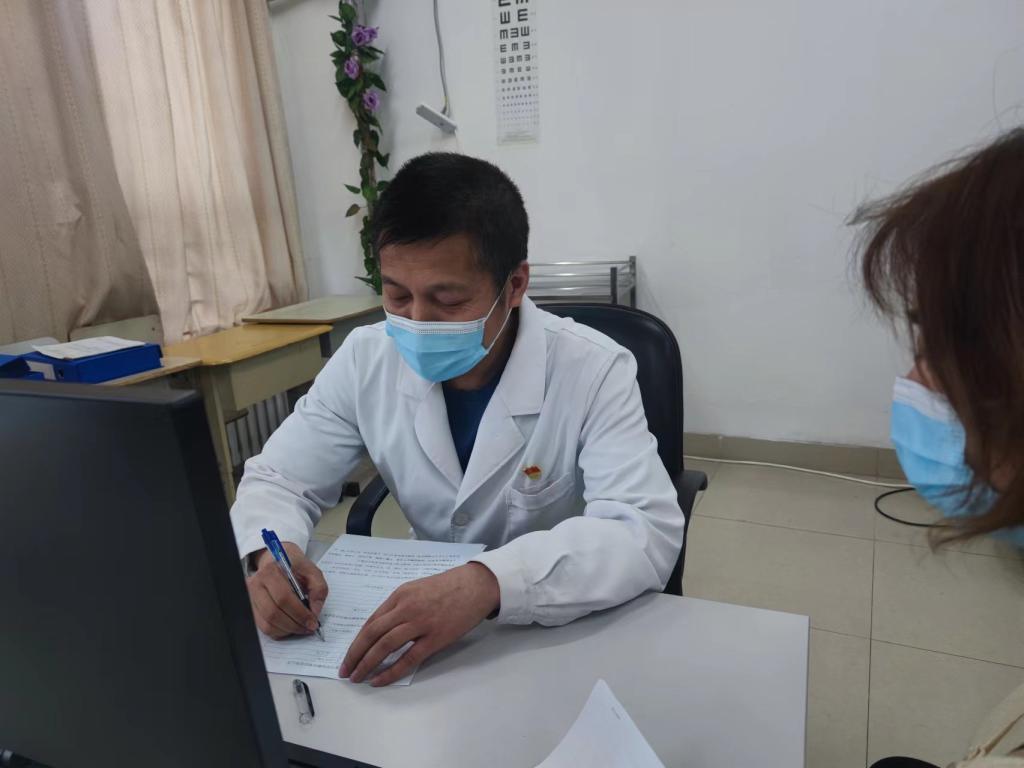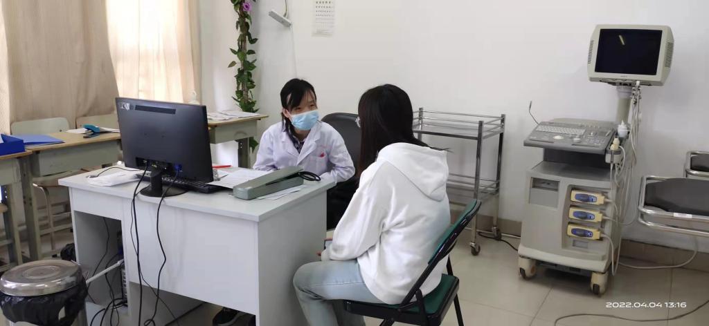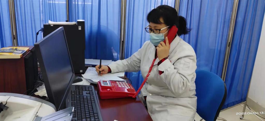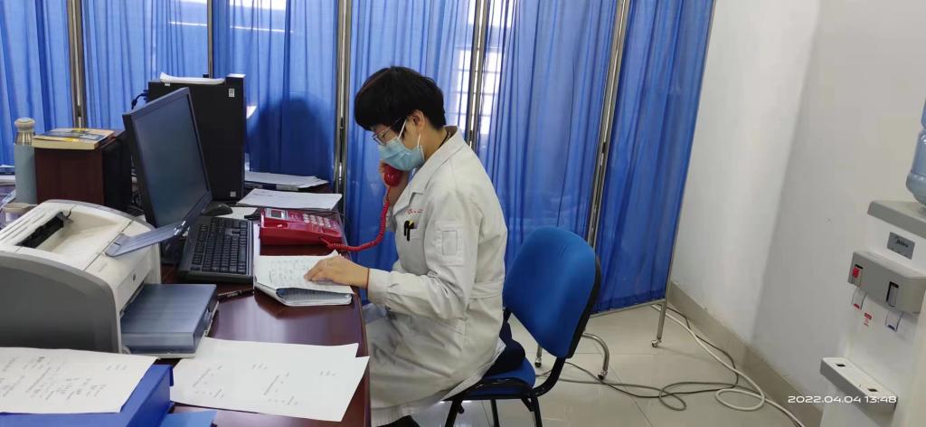 李阳医生每天负责电话接诊和远程健康咨询指导,以及门诊部就诊师生的正常诊疗。除了常见内科疾病及多发病外,还需要联系皮肤科眼科妇科等医生会诊。进校时天气还比较冷,穿着棉服工作,随着天气逐渐变暖,疫情依然形势严峻,按照疫情防控要求及家里属于封控区,春装迟迟不能到位,她每天穿着厚厚的衣服,汗流浃背地工作。接到进入国际学院健康监测区工作任务后,没有丝毫犹豫服从安排,进驻工作,24小时为健康监测的学生及工作人员提供诊疗服务。有的学生因为考研压力大焦虑失眠,或是生病后担心自己病情加重哭鼻子,她接到学生求助后随时对学生进行安抚,还以自身当年的考研经验指导他们如何备考,耐心地在电话上或微信上跟学生谈心,学生们由愁眉苦脸换上了阳光灿烂的笑脸,她却因为母亲身体不好就医帮不上忙而暗自垂泪。每天饱受皮肤过敏及夜内咳嗽睡不好觉的煎熬,但她没有一句抱怨,仍坚持忘我工作。