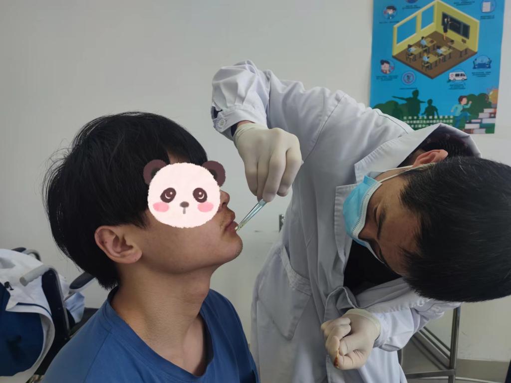 王文军外科医生和周冬玲内科医生在门诊部的日常诊疗工作中发挥了重要的作用。他们不厌其烦地为学生讲解疾病的情况、服药方法和注意事项,他们用自己的实际行动,默默地工作着、奉献着,除日常诊疗外他们还要去核酸采集点进行核酸采集工作,没有一天休息。他们说:“能够在这样的重大事件中,留下自己的痕迹,亲身参与其中,是很荣耀的,是值得骄傲的,一定会全力以赴地完成学校医疗保障核酸采集任务。”