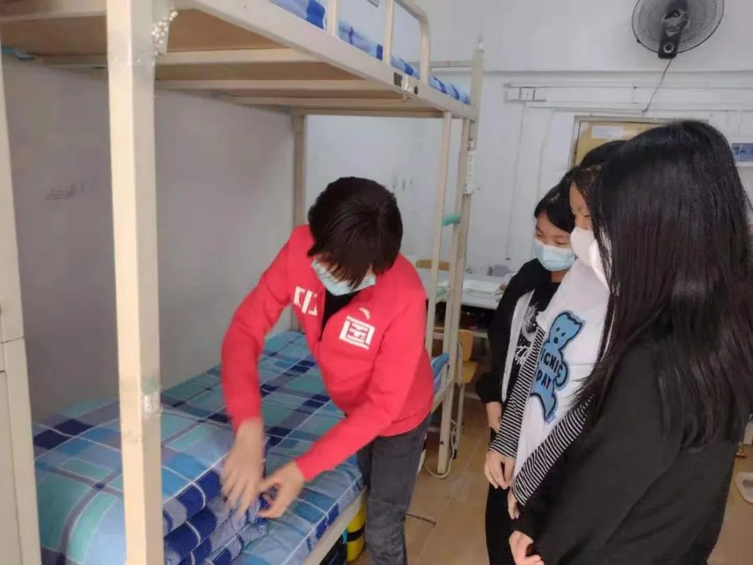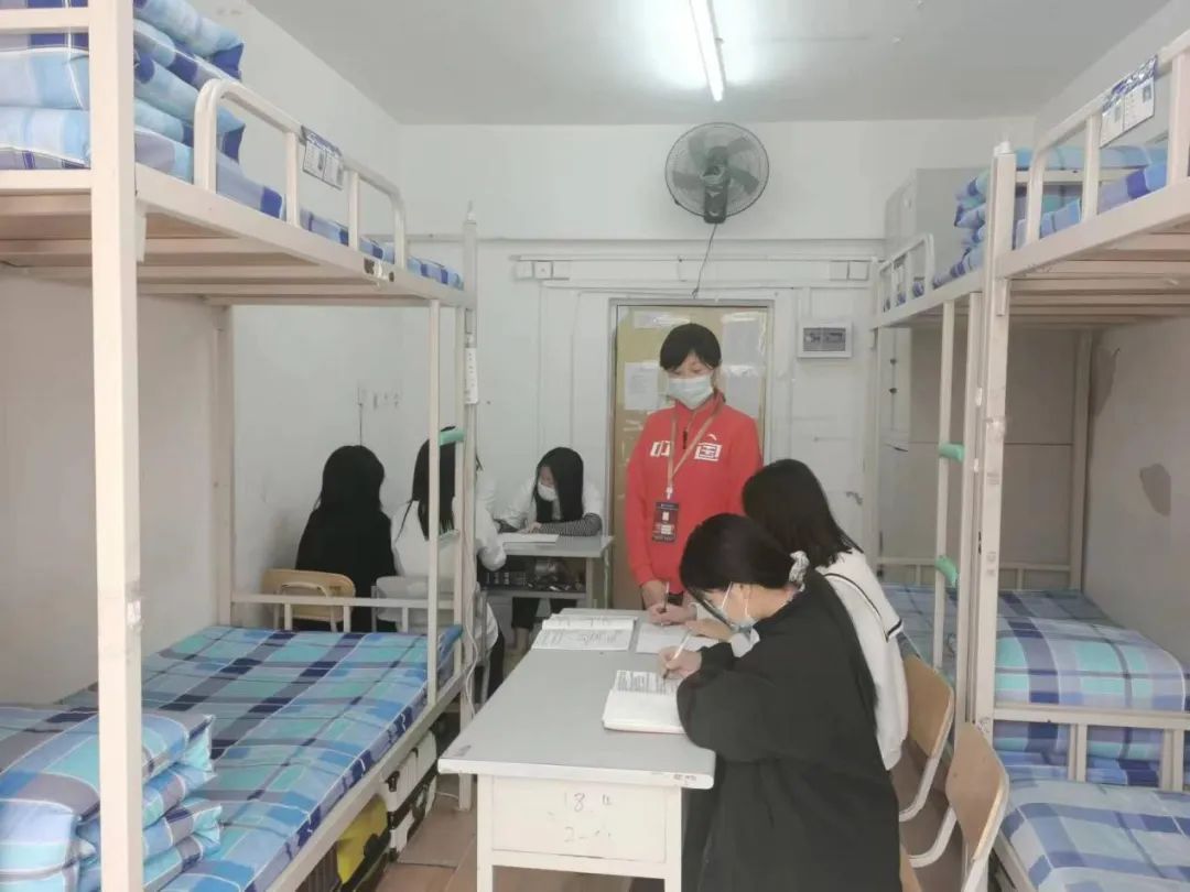 疫情面前,她是认真细致的“检查员”。疫情监测,需要做到不漏一人、科学严谨,决不允许抱有敷衍应付、交差了事的态度。作为八号楼的单元长,她承担着楼宇枢纽作用,每日三次深入走访宿舍、掌握学生生活需求和心理状态,关心了解学生家庭经济困难情况,严格落实晨午检晚制度,检查寝室卫生、排查安全及通风等已成为工作常态。
