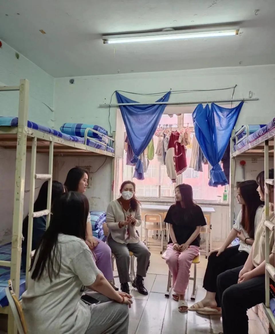 初为单元长,她为了充分了解学生们的情况,将618名在校学生的信息建立了台账。对于楼内重点关注的同学通过辅导员进行了初步了解,建立了特殊学生台账并逐一谈心谈话。她坚持走访169间学生寝室,了解全封闭管理期间学生学习、生活诉求,将问题整理上报,并积极联系相关部门帮助学生解决困难。对于学生们提出的问题,她也耐心、详细地答疑解惑,还会用线上会议的方式将学校防疫工作部署传达给每一名学生。