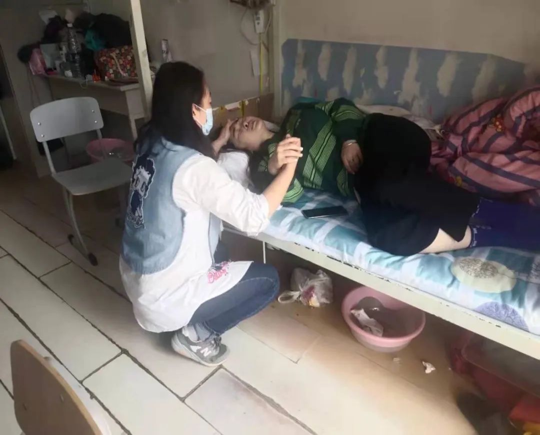 李萍是附属卫生学校班主任,在学校选派进驻学院封闭管理的工作人员时,虽然她腿部做手术刚恢复好,但她还是主动请缨,义无反顾地赶到学院,担任学生公寓八号楼单元长。