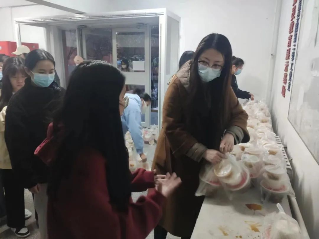 高舒欣对学生的关爱不仅是思想上,更是生活上。在学校为学生们提供免费红烧肉活动中,她和志愿者为学生们往返多次进行配餐服务;组织贫困学生参加勤工俭学岗位,并为他们发放代金券;对因为疫情导致的经济困难生,她购买食品进行慰问;每周带领学生进行优秀寝室评选,亲自颁发流动红旗和奖品;还经常带领学生开展文体活动。从楼内的抗疫宣传海报活动到室外的球类系列运动,还是组织同学们在操场上做游戏进行放松等等,她利用丰富多彩的活动保障学生们的身心健康,细致入微的工作温暖着每一名学生。