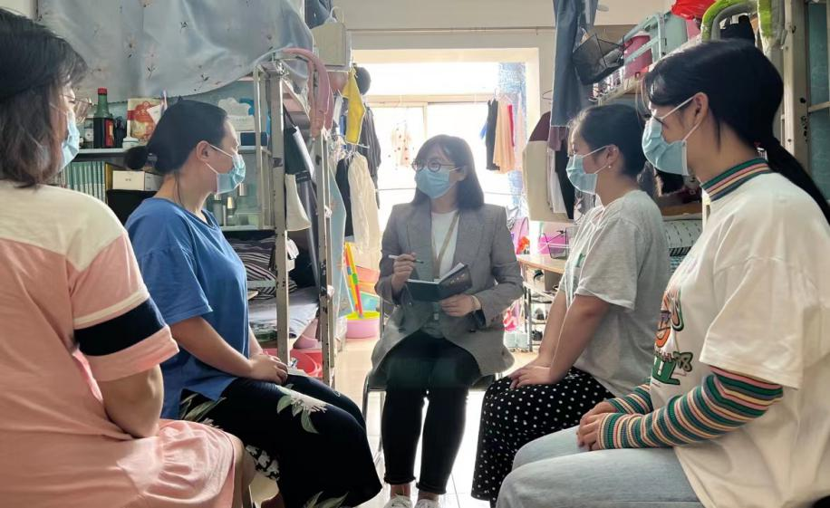 775个公卫孩子需要她,872名五号楼学生需要她,面对复杂严峻的疫情防控形势,学校严格落实网格化管理。为做好学生的思想工作,她带领在校辅导员走访了公卫学院的161个寝室,五号楼168个寝室精准谈心谈话,关心了解学生的需求和困难;面对学生突发状况,她用24小时的时间与寝室同学一起陪伴,避免次生问题发生,用8个小时的时间与寝室成员谈心谈话,收集有用信息,整理工作思路,用2个小时的时间与重点学生面对面谈心谈话。